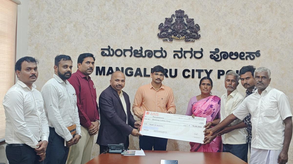 Family members of the bereaved police constable G.N. Harish received a cheque of ₹70 lakh from Police Commissioner Sudheer Kumar Reddy and Bank of Baroda Mangaluru Regional Head C.V.S. Chandrasekhar in Mangaluru on Wednesday, January 14. The family members of bereaved police constable G.N. Harish received a cheque for ₹70 lakh on January 14. Bank of Baroda gave away the cheque under the Bank’s Group Insurance Scheme for Police Personnel. The bank’s Mangaluru regional head C.V.S. Chandrasekhar presented the cheque to the family members in the presence of Mangaluru Police Commissioner Sudheer Kumar Reddy. On February 5, 2025, 30-year-old Harish, a police constable attached to Kankanady Town Police station, was returning on his motorcycle to work after taking part in his engagement ceremony on February 2. Near Arathodu, Sullia, his vehicle met with an accident. Passers-by admitted him to Sullia hospital, and from there he was brought to A.J. Hospital in Mangaluru, where he was declared brain dead on February 8. His liver and a kidney were transplanted to patients at A.J. Hospital, while his other kidney was transplanted to a patient at KMC Hospital. Published – January 14, 2026 09:10 pm IST Share this: Click to share on WhatsApp (Opens in new window) WhatsApp Click to share on Facebook (Opens in new window) Facebook Click to share on Threads (Opens in new window) Threads Click to share on X (Opens in new window) X Click to share on Telegram (Opens in new window) Telegram Click to share on LinkedIn (Opens in new window) LinkedIn Click to share on Pinterest (Opens in new window) Pinterest Click to email a link to a friend (Opens in new window) Email More Click to print (Opens in new window) Print Click to share on Reddit (Opens in new window) Reddit Click to share on Tumblr (Opens in new window) Tumblr Click to share on Pocket (Opens in new window) Pocket Click to share on Mastodon (Opens in new window) Mastodon Click to share on Nextdoor (Opens in new window) Nextdoor Click to share on Bluesky (Opens in new window) Bluesky Like this:Like Loading... Post navigation IndiGo will re-start Belagavi-Mumbai flights, says MP Jagadish Shettar Police profiling of mosques as crime sites is an attempt to strip Muslims of faith: Mehbooba Mufti