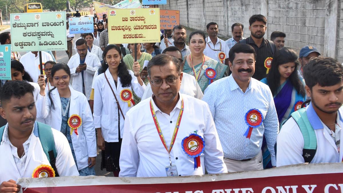A district-level TB awareness rally was organised in Mysuru on Tuesday, on the occasion of World TB Day. | Photo Credit: M.A. Sriram Even as 147 gram panchayats in Mysuru district have been declared ‘TB-free’, authorities have stepped up efforts to sustain the momentum through awareness campaigns and preventive measures. A district-level rally was organised on Tuesday to mark World TB Day, aiming to step up public awareness on tuberculosis elimination. The event also saw the distribution of nutrition kits to infected persons and the recognition of ‘TB-free’ gram panchayats. The rally, jointly organised by Mysore Medical College and Research Institute and the Indian Medical Association, was flagged off by Dr. Puranik, Divisional Joint Director of the Department of Health and Family Welfare. The procession began at SP Office Circle and culminated at the DHO Office (Vaidyara Bhavan), where the formal programme was inaugurated by Dr. Mallika, Divisional Additional Director of the Health and Family Welfare Department. WHO consultant Dr. Rajeev, District Health and Family Welfare Officer Dr. Kumaraswamy, Dr. Nayana from JSS Medical College, and Dr. Sudarshan, Head of Medicine at FAME Medical College, were present. Certificates were distributed to ‘TB-free’ gram panchayats in collaboration with the Karnataka Health Promotion Trust. Nutrition kits were provided with the support of the Swami Vivekananda Youth Movement to infected persons. This year’s TB Day theme was: ‘Yes! We can end TB: Commit, Invest, Deliver’, highlighting the need for collective action in the fight against tuberculosis. District TB Control Officer Dr. Mohammed Siraj Ahmed and other officials were present. Published – March 24, 2026 08:03 pm IST Share this: Click to share on WhatsApp (Opens in new window) WhatsApp Click to share on Facebook (Opens in new window) Facebook Click to share on Threads (Opens in new window) Threads Click to share on X (Opens in new window) X Click to share on Telegram (Opens in new window) Telegram Click to share on LinkedIn (Opens in new window) LinkedIn Click to share on Pinterest (Opens in new window) Pinterest Click to email a link to a friend (Opens in new window) Email More Click to print (Opens in new window) Print Click to share on Reddit (Opens in new window) Reddit Click to share on Tumblr (Opens in new window) Tumblr Click to share on Pocket (Opens in new window) Pocket Click to share on Mastodon (Opens in new window) Mastodon Click to share on Nextdoor (Opens in new window) Nextdoor Click to share on Bluesky (Opens in new window) Bluesky Like this:Like Loading... Post navigation Over 7,300 tonnes of solid waste generated daily in ULBs; circular on scientific disposal soon, says Minister Special trains to run between Hubballi and Rameswaram