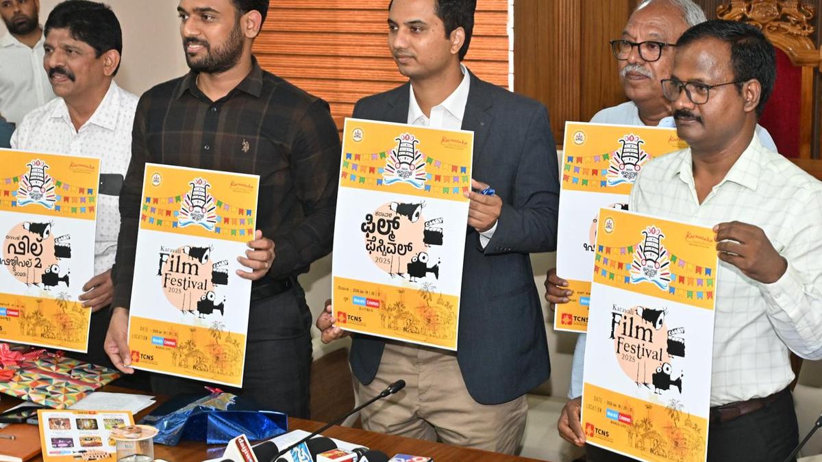 Dakshina Kannada Deputy Commissioner H.V. Darshan, Zilla Panchayat Chief Executive Officer Narwade Vinayak Karbhari and others releasing the posters of the Karavali Film Festival in Mangaluru on January 14. | Photo Credit: H.S. Manjunath As many as 18 films in Kannada, Tulu, Konkani and Beary will be screened during the Karavali Film Festival to be held at Bharat Cinemas in Mangaluru from January 19 to 21. The film festival is part of the Karavali Utsava 2025. Talking to reporters on January 14, Deputy Commissioner H.V. Darshan said the film festival aims at promoting native films, screening six films daily with free entry on a first-come, first-served basis. An online booking system will soon be available. Among the 18 films, 11 will be in Tulu to support the Tulu language. The first film to be screened will be Tulu film Yesa at 10 a.m., followed by another Tulu film Chandikori at 1.30 p.m. The Konkani film Fondacho Misther will be screened at 4.15 p.m., Tulu film Oriyardori Asal at 7 p.m., Kannada film Su from So at 7.30 p.m. and Tulu film Raj Sounds and Lights at 10.15 p.m. On the second day, screenings will begin with Tulu film Pidayi, followed by Tulu films Pilibail Yamunakka, Meera and Girgit, Kannada film Sarakari Hirya Prathamika Shaale Kasaragodu and another Tulu film Koramma. On January 21, screenings will begin with Beary film Byari, followed by Tulu film Dabak Daba Aisa, Konkani film Ujjwadu, Tulu film Daskath, Kannada film Garuda Gamana Vrishabha Vahana and Kannada film Ulidavaru Kandanthe. The film festival will be inaugurated at 9.30 a.m. on January 19, Mr. Darshan said. Narwade Vinayak Karbhari, Zilla Panchayat CEO, K. Raju, Addtional DC, G. Santhosh Kumar, District Project Officer and other senior officers were present. Published – January 14, 2026 07:05 pm IST Share this: Click to share on WhatsApp (Opens in new window) WhatsApp Click to share on Facebook (Opens in new window) Facebook Click to share on Threads (Opens in new window) Threads Click to share on X (Opens in new window) X Click to share on Telegram (Opens in new window) Telegram Click to share on LinkedIn (Opens in new window) LinkedIn Click to share on Pinterest (Opens in new window) Pinterest Click to email a link to a friend (Opens in new window) Email More Click to print (Opens in new window) Print Click to share on Reddit (Opens in new window) Reddit Click to share on Tumblr (Opens in new window) Tumblr Click to share on Pocket (Opens in new window) Pocket Click to share on Mastodon (Opens in new window) Mastodon Click to share on Nextdoor (Opens in new window) Nextdoor Click to share on Bluesky (Opens in new window) Bluesky Like this:Like Loading... Post navigation Water level in Papanasam dam stands at 124.80 feet Applications invited for State Film Awards