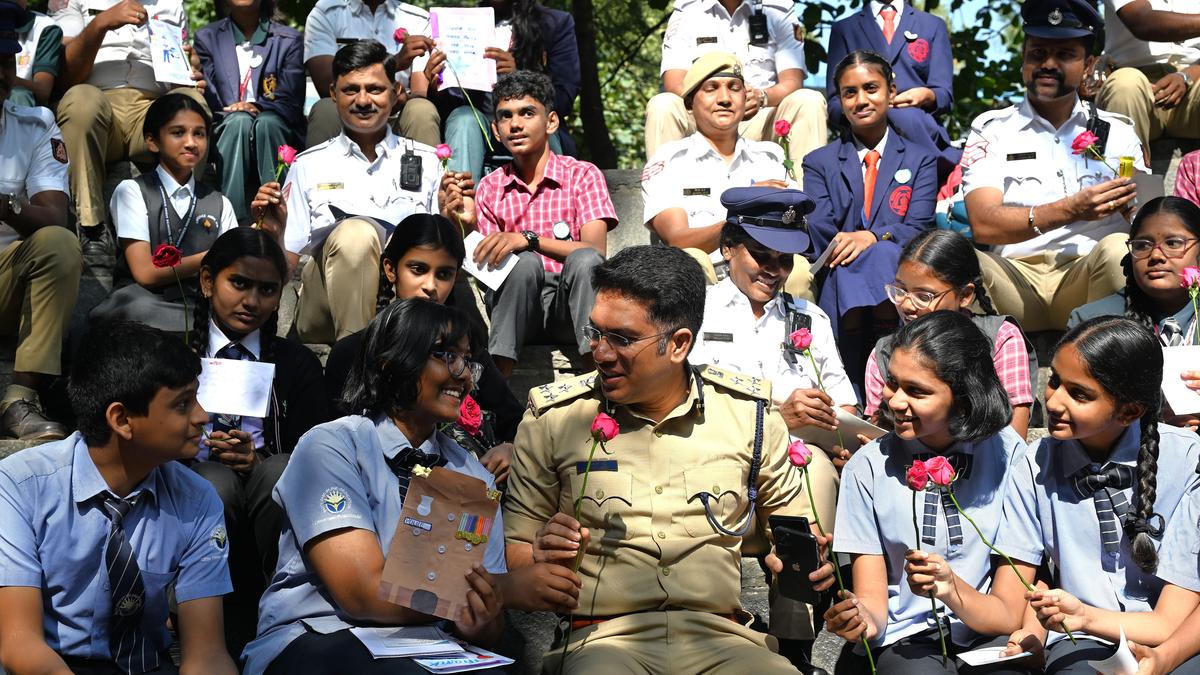 Karthik Reddy, Deputy Inspector General and Joint Commissioner of Police (Traffic) interact with schoolchildren during “Celebrating My City Traffic Police Day”, organised by CMCA at Traffic Park in Bengaluru on January 30, 2026. | Photo Credit: ALLEN EGENUSE J The Children’s Movement for Civic Awareness (CMCA), supported by the GoZe Foundation, celebrated the 18th annual My City Traffic Police Day at the Traffic Police Park, St. Mark’s Road. The event honoured Bengaluru’s traffic police for their tireless service in keeping the city safe and moving. Over 40 traffic police personnel and 60–70 students from 15 schools participated, with children expressing gratitude through handmade cards, flowers, songs, and poems. Senior police officers, including Karthik Reddy and Anoop A. Shetty, praised the initiative for fostering civic responsibility and empathy among students. CMCA reaffirmed its commitment to civic education and community engagement. Published – January 31, 2026 07:12 am IST Share this: Click to share on WhatsApp (Opens in new window) WhatsApp Click to share on Facebook (Opens in new window) Facebook Click to share on Threads (Opens in new window) Threads Click to share on X (Opens in new window) X Click to share on Telegram (Opens in new window) Telegram Click to share on LinkedIn (Opens in new window) LinkedIn Click to share on Pinterest (Opens in new window) Pinterest Click to email a link to a friend (Opens in new window) Email More Click to print (Opens in new window) Print Click to share on Reddit (Opens in new window) Reddit Click to share on Tumblr (Opens in new window) Tumblr Click to share on Pocket (Opens in new window) Pocket Click to share on Mastodon (Opens in new window) Mastodon Click to share on Nextdoor (Opens in new window) Nextdoor Click to share on Bluesky (Opens in new window) Bluesky Like this:Like Loading... Post navigation Expectations from a gender lens in Budget 2026-27 PDP’s Parra introduces ‘J&K Reconciliation, Trauma Healing and Dignity’ Bill in Assembly