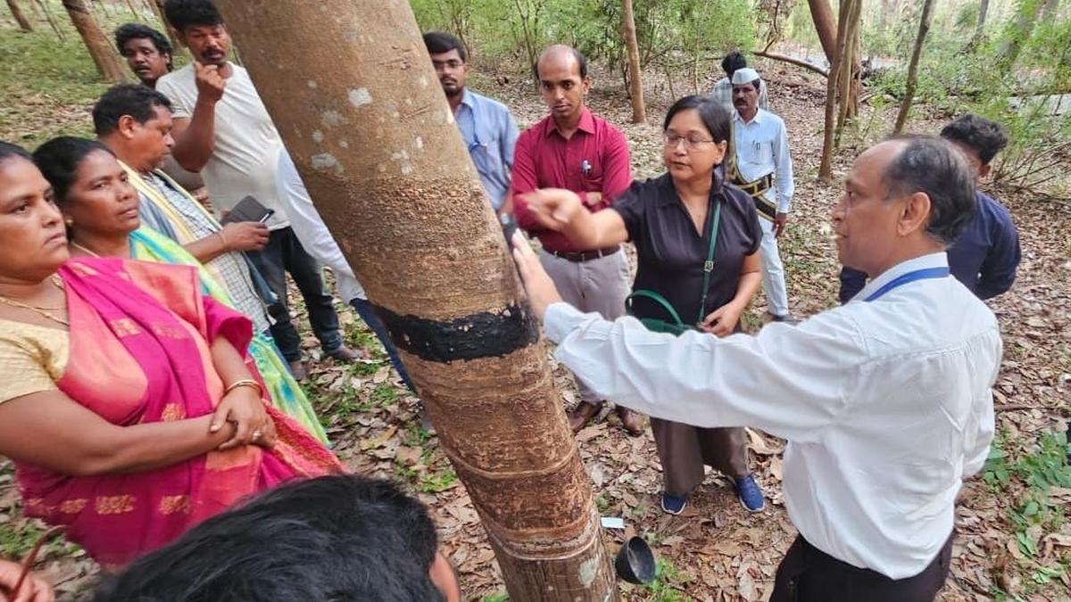 Ministry of Tribal Affairs Director Varnali Deka and Joint Collector B. Smaran Raj inspecting a rubber plantation at Devarapalli near Rampachodavaram in Polavaram district on Friday. | Photo Credit: BY ARRANGEMENT Ministry of Tribal Affairs Director Varnali Deka assured the tribes of Polavaram district that at least 3,000 acres would be brought under rubber plantation to improve their livelihood. Ms. Varnali Deka and Polavaram district Joint Collector and Integrated Tribal Development Agency (ITDA-Rampachodavaram) Project Officer B. Smaran Raj on Friday (April 10, 2026) inspected the rubber plantation cultivated by the Konda Reddi tribal families in Devarapalli near Rampachodavaram in Polavaram district. The officials assessed the improvement in the livelihood of the tribals involved in rubber cultivation. Published – April 11, 2026 08:20 pm IST Share this: Click to share on WhatsApp (Opens in new window) WhatsApp Click to share on Facebook (Opens in new window) Facebook Click to share on Threads (Opens in new window) Threads Click to share on X (Opens in new window) X Click to share on Telegram (Opens in new window) Telegram Click to share on LinkedIn (Opens in new window) LinkedIn Click to share on Pinterest (Opens in new window) Pinterest Click to email a link to a friend (Opens in new window) Email More Click to print (Opens in new window) Print Click to share on Reddit (Opens in new window) Reddit Click to share on Tumblr (Opens in new window) Tumblr Click to share on Pocket (Opens in new window) Pocket Click to share on Mastodon (Opens in new window) Mastodon Click to share on Nextdoor (Opens in new window) Nextdoor Click to share on Bluesky (Opens in new window) Bluesky Like this:Like Loading... Post navigation Kozhikode youth goes missing from Norwegian cruise ship Jaipur students develop AI-enabled platform for soldiers’ access to schemes
