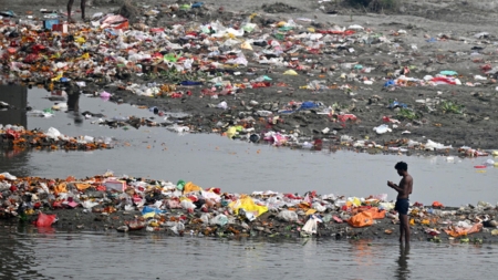 and industrial waste falling into the river and increasing the
