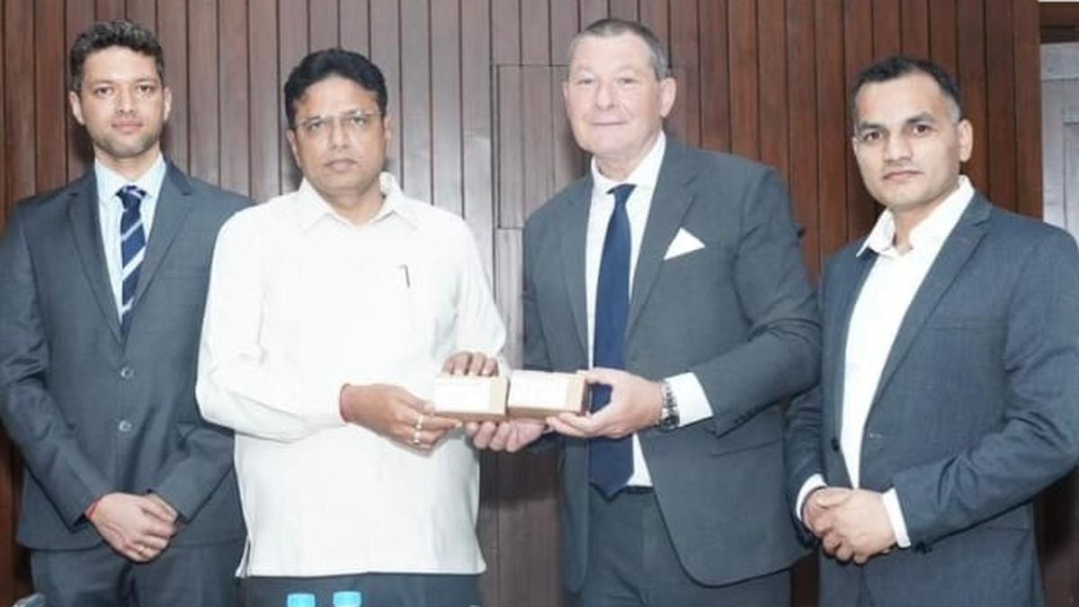 IT French and Industries Minister D. Sridhar Babu at the launch of DR-TB diagnostic kits with Consul General of France Marc Lamy, bioMérieux executive chairman Alexandre Mérieux and Telangana Lifesciences Director and CEO Sarvesh Singh, at the Assembly Committee Hall in Hyderabad on Tuesday.