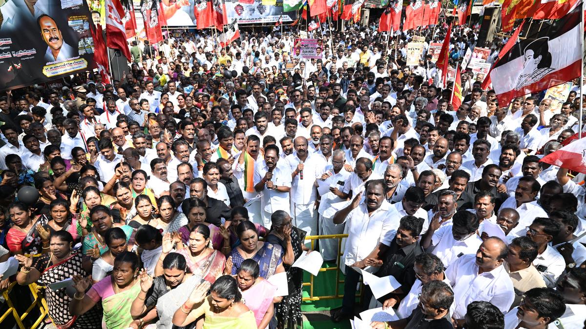 Demanding action against those involved in corruption in Madurai Corporation, the AIADMK, cadres of parties in NDA staged a demonstration in Madurai on Thursday.