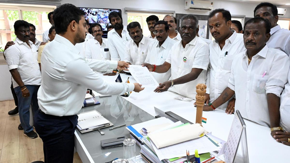 AIADMK candidate for the Coimbatore South Assembly constituency, Amman K. Arjunan, submitted a petition to District Election Officer and Collector Pavankumar G. Giriyappanavar on Monday. | Photo Credit: PERIASAMY M. The Dravida Munnetra Kazhagam (DMK) candidate for Coimbatore South is scared of facing the elections and hence he is distributing cash to voters, alleged the AIADMK candidate for the constituency Amman K. Arjunan. Talking to the media after submitting a complaint to the District Collector and District Election Officer Pavankumar G. Giriyappanavar on Monday, he said that the AIADMK – BJP cadre caught “men from Karur” distributing cash to voters at eight locations on Sunday night. The men visited the voters in their houses and gave ₹5,000 for each vote, he alleged. Published – April 20, 2026 06:44 pm IST Share this: Click to share on WhatsApp (Opens in new window) WhatsApp Click to share on Facebook (Opens in new window) Facebook Click to share on Threads (Opens in new window) Threads Click to share on X (Opens in new window) X Click to share on Telegram (Opens in new window) Telegram Click to share on LinkedIn (Opens in new window) LinkedIn Click to share on Pinterest (Opens in new window) Pinterest Click to email a link to a friend (Opens in new window) Email More Click to print (Opens in new window) Print Click to share on Reddit (Opens in new window) Reddit Click to share on Tumblr (Opens in new window) Tumblr Click to share on Pocket (Opens in new window) Pocket Click to share on Mastodon (Opens in new window) Mastodon Click to share on Nextdoor (Opens in new window) Nextdoor Click to share on Bluesky (Opens in new window) Bluesky Like this:Like Loading... Post navigation Skill drive to boost economy, stabilise population in Andhra Pradesh Cashless medical treatment sought for wildlife attack victims