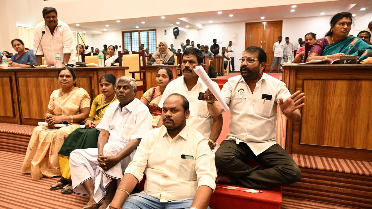 AIADMK councillors sought a resolution be passed that the deposit amount and drinking water charges will not be increased in Salem Corporation. | Photo Credit: LAKSHMI NARAYANAN E. The All India Anna Dravida Munnetra Kazhagam (AIADMK) councillors staged a sit-in protest at the council meeting held at a meeting hall in the Salem Corporation office on Monday (February 9, 2026). City Mayor A. Ramachandran presided over the meeting where 90 resolutions were passed. Speaking at the meeting, opposition leader (AIADMK) N. Yadhavamoorthy, citing the 21st resolution, said that Salem Corporation had awarded a contract worth ₹4,315 crore to a private company to supply 24×7 drinking water to residents. He alleged that the intervention of a private company might increase the charges for drinking water and the deposit amount to be paid for the water connection, which will be an additional burden for the people. “The Corporation should cancel the 21st resolution in this regard and also hold five more resolutions that were mentioned in the urgent council meeting agenda,” Mr. Yadhavamoorthy added. Following this, the AIADMK councillors staged a sit-in protest before the Mayor, demanding to cancel the resolution, which created a verbal duel between the Dravida Munnetra Kazhagam (DMK) and AIADMK councillors. The Mayor intervened and assured that he would give explanations regarding the tender given to the private company and the AIADMK councillors went back to their seats. Explaining the project, Corporation executive engineer Senthil said that of the total cost of the project, 30% each will be borne by the Union and State governments, and the remaining 40% will be borne by the private company. The residents should pay the amount for drinking water consumed and meters will be installed to calculate the usage. The AIADMK councillors then demanded an explanation on whether the deposit amount or drinking water charges will be increased or not. Replying to this, the Corporation officials assured that it will not be hiked. Later, the AIADMK councillors sought a resolution be passed that the deposit amount and drinking water charges will not be increased. The DMK and the Viduthalai Chiruthaigal Katchi (VCK) councillors demanded to remove the AIADMK councillors from the meeting, as they were not allowing others to speak. Following this, a verbal duel broke out between them. Published – February 09, 2026 07:11 pm IST Share this: Click to share on WhatsApp (Opens in new window) WhatsApp Click to share on Facebook (Opens in new window) Facebook Click to share on Threads (Opens in new window) Threads Click to share on X (Opens in new window) X Click to share on Telegram (Opens in new window) Telegram Click to share on LinkedIn (Opens in new window) LinkedIn Click to share on Pinterest (Opens in new window) Pinterest Click to email a link to a friend (Opens in new window) Email More Click to print (Opens in new window) Print Click to share on Reddit (Opens in new window) Reddit Click to share on Tumblr (Opens in new window) Tumblr Click to share on Pocket (Opens in new window) Pocket Click to share on Mastodon (Opens in new window) Mastodon Click to share on Nextdoor (Opens in new window) Nextdoor Click to share on Bluesky (Opens in new window) Bluesky Like this:Like Loading... Post navigation Villagers of Kallikudi taluk protest demanding closure of illegal quarries Beijing residents say Japan election could affect China-Japan ties