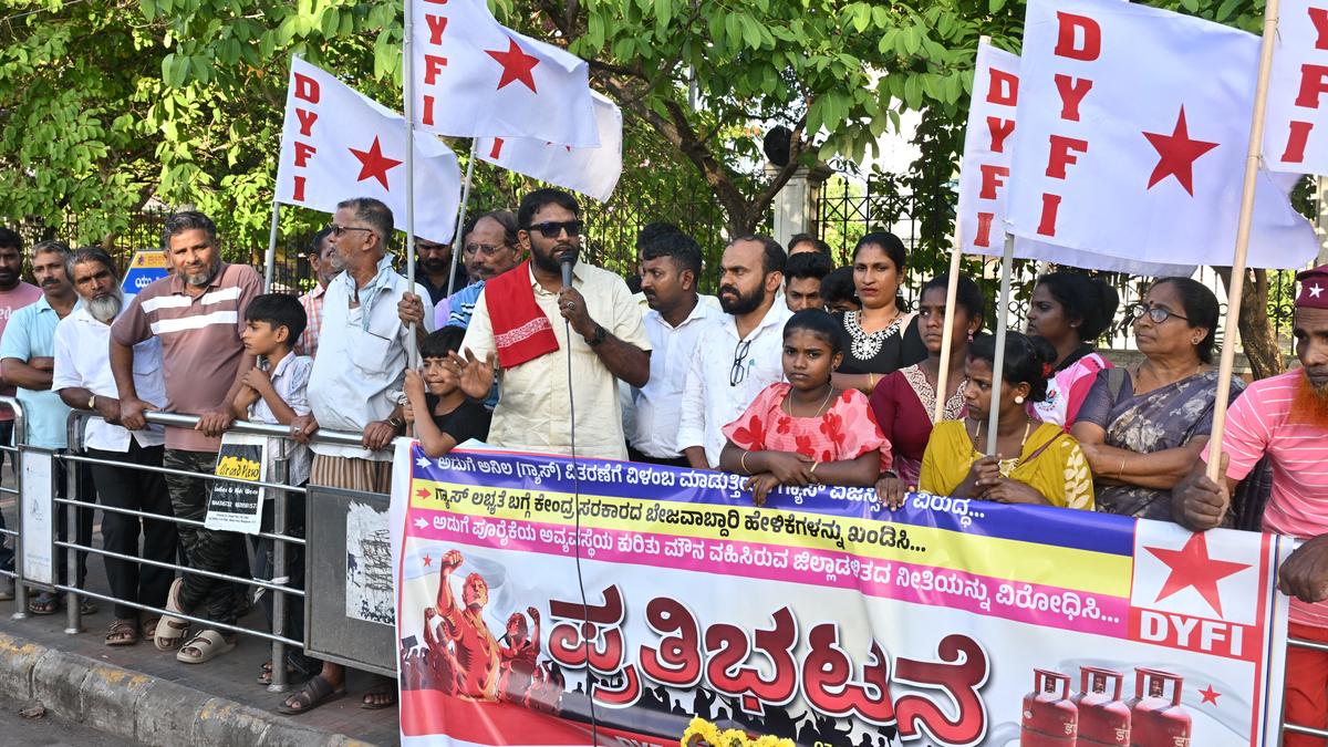 B.K. Imtiyaz, Dakshina Kannada district president of Democratic Youth Federation of India, addressing a protest meet against alleged black-marketing of LPG cylinders, in Mangaluru on Tuesday (April 7). | Photo Credit: H.S. MANJUNATH The Dakshina Kannada unit of Democratic Youth Federation of India (DYFI) has alleged that LPG distributors have resorted to black-marketing even as the district administration has failed to contain the “gas mafia” that has emerged following the West Asia crisis. Speaking at a protest organised by DYFI in the city on Tuesday (April 7) to protest non-availability of LPG cylinders, DYFI Dakshina Kannada president B.K. Imtiyaz said the government should provide an immediate solution to the problems being faced by common people. Published – April 07, 2026 08:51 pm IST Share this: Click to share on WhatsApp (Opens in new window) WhatsApp Click to share on Facebook (Opens in new window) Facebook Click to share on Threads (Opens in new window) Threads Click to share on X (Opens in new window) X Click to share on Telegram (Opens in new window) Telegram Click to share on LinkedIn (Opens in new window) LinkedIn Click to share on Pinterest (Opens in new window) Pinterest Click to email a link to a friend (Opens in new window) Email More Click to print (Opens in new window) Print Click to share on Reddit (Opens in new window) Reddit Click to share on Tumblr (Opens in new window) Tumblr Click to share on Pocket (Opens in new window) Pocket Click to share on Mastodon (Opens in new window) Mastodon Click to share on Nextdoor (Opens in new window) Nextdoor Click to share on Bluesky (Opens in new window) Bluesky Like this:Like Loading... Post navigation IGMC Stadium in Vijayawada set for ₹280 crore renovation in phases Nominations of 154 candidates accepted in Virudhunagar district