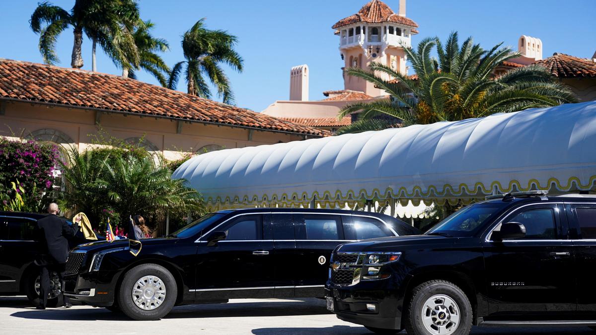The presidential limousine parked outside at Mar-a-Lago in Palm Beach, Florida, U.S., on February 1, 2026.