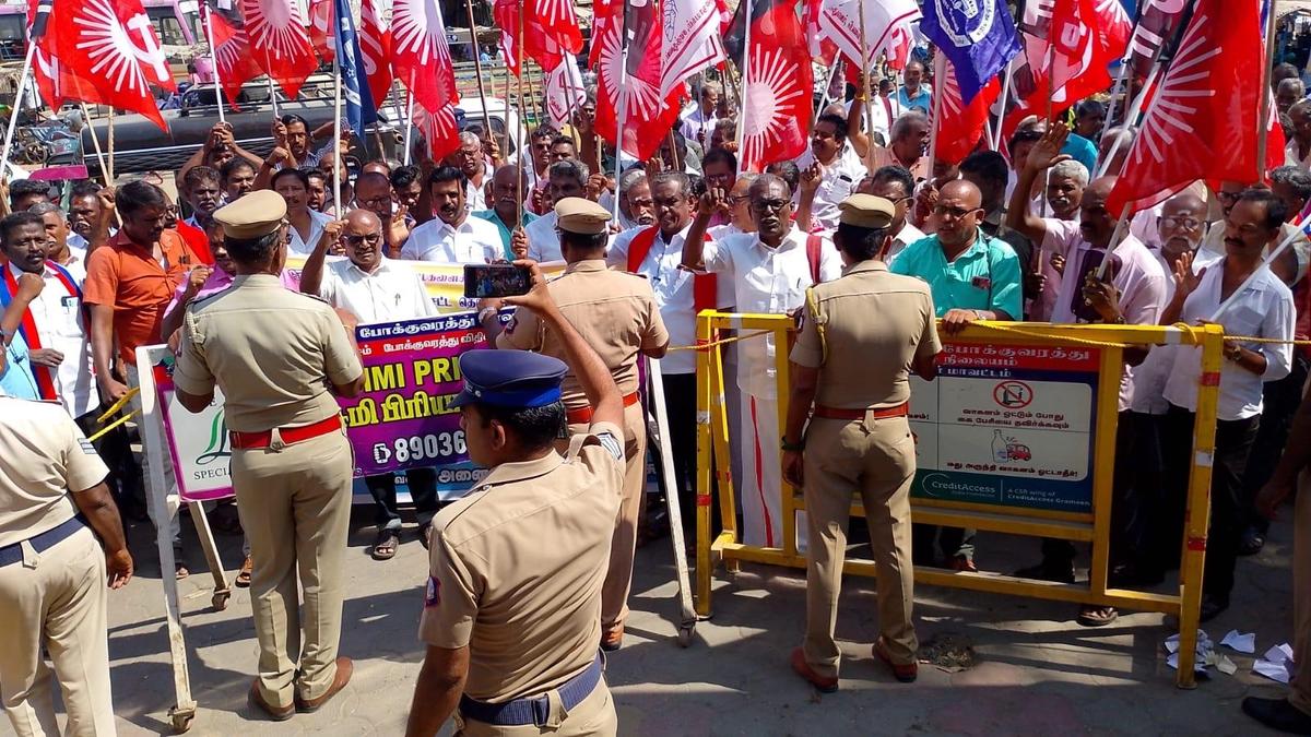 Members of various trade unions staging a protest against the four labour codes introduced by the Union Government at Virudhunagar on Thursday. | Photo Credit: SPECIAL ARRANGEMENT Normal life was not impacted in Virudhunagar district by the Bharat Bandh call given by various trade unions protesting against the four labour codes brought by the Union Government, on Thursday. Banking transactions were not affected as only around 100 employees had struck work, according to police sources. Buses, including private buses, and autorickshaws operated as usual. However, members of various trade unions including CITU, LPF, AITUC, INTUC, took part in the road picketing held at 17 places across the district. At Desabandhu ground in Virudhunagar town, LPF zonal general secretary, Rajaselvam led the protest in which CITU district secretary, P. N. Deva, and AITUC leader, Pandian took part. Mr. Deva said that the 29 labour laws that were earned through lot of struggle and blood shed in the past several decades had been undone by the Union Government by replacing them with four labour codes. “All the welfare measures hitherto enjoyed by the labourers have been snatched at one go,” he said. Any industry can lay-off the employees at their will without giving adequate compensation to the labourers. Eight hours of duty which was hard-earned by the trade unions will no more apply for the workers. The employees would force them to work for longer hours without any extra wages. Similarly, the employer need to regularise the job. The benefits like employees state insurance scheme and provident fund would no more be mandatory. “In the absence of such social security scheme, any employee who falls sick would be at the mercy of the employer. Earlier, the employees could get full wages for their period of treatment for major ailments,” he said. The companies need not pay the salary by the 7th of every month and any sick unit could be closed without the concurrence of the labour department. Similarly, labour welfare boards were also not mandatory under the new labour code, Mr. Deva said. All the arrested trade union members were released later in the day. Published – February 12, 2026 06:13 pm IST Share this: Click to share on WhatsApp (Opens in new window) WhatsApp Click to share on Facebook (Opens in new window) Facebook Click to share on Threads (Opens in new window) Threads Click to share on X (Opens in new window) X Click to share on Telegram (Opens in new window) Telegram Click to share on LinkedIn (Opens in new window) LinkedIn Click to share on Pinterest (Opens in new window) Pinterest Click to email a link to a friend (Opens in new window) Email More Click to print (Opens in new window) Print Click to share on Reddit (Opens in new window) Reddit Click to share on Tumblr (Opens in new window) Tumblr Click to share on Pocket (Opens in new window) Pocket Click to share on Mastodon (Opens in new window) Mastodon Click to share on Nextdoor (Opens in new window) Nextdoor Click to share on Bluesky (Opens in new window) Bluesky Like this:Like Loading... Post navigation Supreme Court rejects bail plea of Raj Kesireddy in Andhra Pradesh liquor scam case Who is IAS G. Srijana, Cyberabad Municipal Corporation Commissioner?