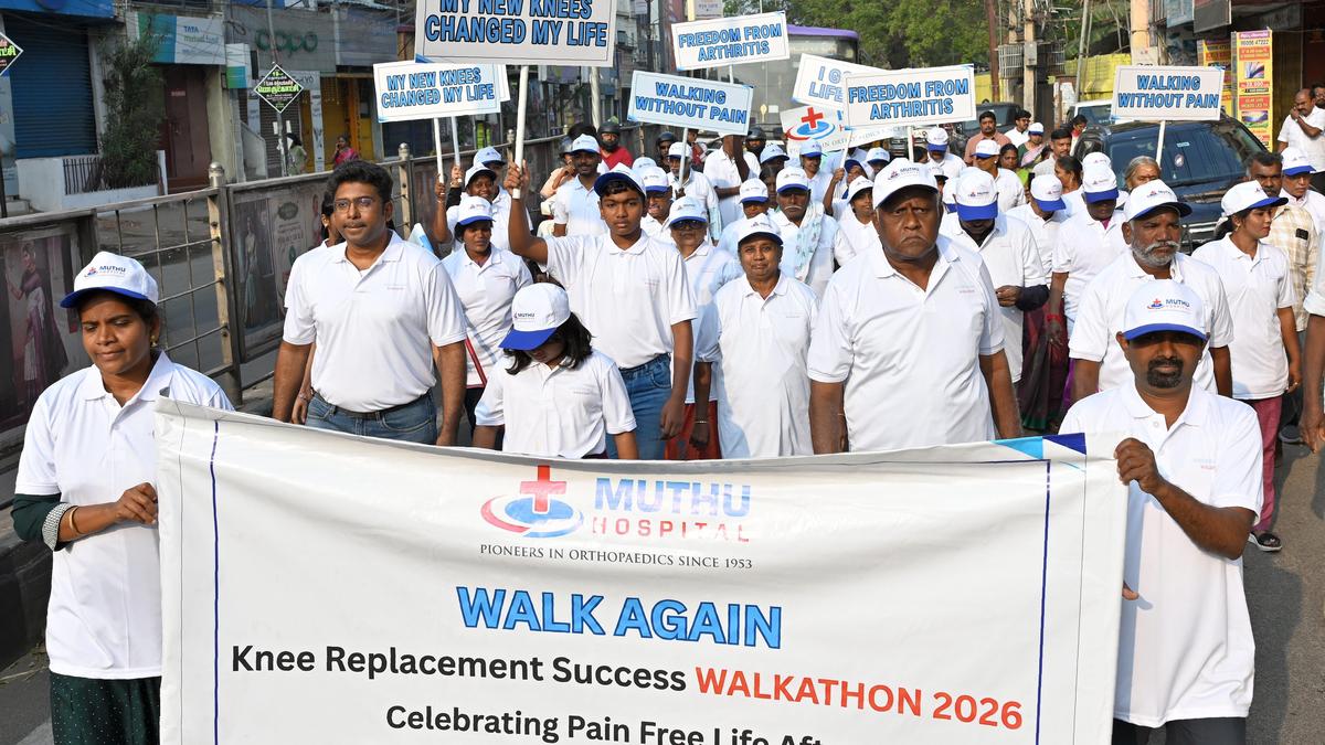 The walkathon in progress in Madurai on Sunday. | Photo Credit: R. ASHOK Muthu Hospital here organised a ‘Walk Again – Knee Replacement Success Walkathon 2026’ on Sunday. The 500-metre walkathon commenced from Sethupathi School and concluded at Muthu Hospital. The event featured participants who successfully underwent knee replacement surgery, hip replacement surgery and regained pain-free independent mobility. The initiative aimed to celebrate patient recovery and create awareness about modern advancements in knee and hip replacement surgery that enable individuals suffering from chronic knee pain to return to an active and pain-free life. Published – March 01, 2026 09:11 pm IST Share this: Click to share on WhatsApp (Opens in new window) WhatsApp Click to share on Facebook (Opens in new window) Facebook Click to share on Threads (Opens in new window) Threads Click to share on X (Opens in new window) X Click to share on Telegram (Opens in new window) Telegram Click to share on LinkedIn (Opens in new window) LinkedIn Click to share on Pinterest (Opens in new window) Pinterest Click to email a link to a friend (Opens in new window) Email More Click to print (Opens in new window) Print Click to share on Reddit (Opens in new window) Reddit Click to share on Tumblr (Opens in new window) Tumblr Click to share on Pocket (Opens in new window) Pocket Click to share on Mastodon (Opens in new window) Mastodon Click to share on Nextdoor (Opens in new window) Nextdoor Click to share on Bluesky (Opens in new window) Bluesky Like this:Like Loading... Post navigation Kerala Chief Minister’s moment with young landslide survivor takes political turn Kakani, Somireddy trade charges over ₹100 crore land row in Nellore