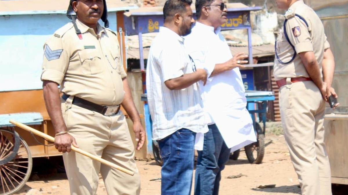 Chetan Singh Rathore, Inspector General of Police, meeting residents of some areas in Bagalkot after the stone pelting incidents in the city on Friday. | Photo Credit: SPECIAL ARRANGEMENT Bagalkot city, which witnessed two instances of stone pelting and subsequent tension on Thursday and Friday, is slowly returning to normalcy, with people carrying out day-to-day transactions without any hassles on Saturday. However, as a precautionary measure, the police have beefed up security, especially around the Panka mosque and surrounding areas where the instances of violence were reported. In a related development, Bagalkot Deputy Commissioner Sangappa has issued separate orders prohibiting entry of Sri Rama Sene chief Pramod Mutalik and Hindutva activist Punith Kerehalli to Bagalkot district till March 21. Despite the prohibitory orders still in place, the police allowed the Hindu convention to be held in Navanagar, and it concluded without any untoward incident. Meanwhile, the number of arrests in connection with instances of violence on Thursday and Friday have gone up to 10. The police have arrested eight persons, including one identified as Tanveer, who has been charged with pelting stones, based on the available video footage. Two more persons have been arrested in connection with Friday’s instance of stone pelting at meat shops. In a related incident, Ashok Baraker, an activist of Hindu Jagaran Vedike, broke his hand after he fell while trying to escape being caught by the police. In his statement, Mr. Baraker said that he was proceeding to participate in the ‘Hindu Samavesh’ on Sunday, and at Ambedkar Circle, police personnel chased him with lathis. “Out of fear, I tried to run away, fell down, and broke my hand. After falling down, I was taken to the Town Police Station. Subsequently my brother brought me to the hospital for treatment,” he told the press. Taking exception to the development, Viranna Charantimath, former MLA, has alleged that the police were trying to fuel further violence by trying to arrest Hindu youths. . On Saturday, Mr. Charantimath visited a private hospital to enquire about the health of Prakash Arakeri, a Hindutva activist who was allegedly injured in stone pelting. He demanded that there should be inquiry into who instigated the accused persons to throw stones at the procession. Published – February 21, 2026 09:38 pm IST Share this: Click to share on WhatsApp (Opens in new window) WhatsApp Click to share on Facebook (Opens in new window) Facebook Click to share on Threads (Opens in new window) Threads Click to share on X (Opens in new window) X Click to share on Telegram (Opens in new window) Telegram Click to share on LinkedIn (Opens in new window) LinkedIn Click to share on Pinterest (Opens in new window) Pinterest Click to email a link to a friend (Opens in new window) Email More Click to print (Opens in new window) Print Click to share on Reddit (Opens in new window) Reddit Click to share on Tumblr (Opens in new window) Tumblr Click to share on Pocket (Opens in new window) Pocket Click to share on Mastodon (Opens in new window) Mastodon Click to share on Nextdoor (Opens in new window) Nextdoor Click to share on Bluesky (Opens in new window) Bluesky Like this:Like Loading... Post navigation Sasi Kanta Dash takes charge as Director of Kanchi Mamunivar Centre Congress leader R. Reshmi joins BJP
