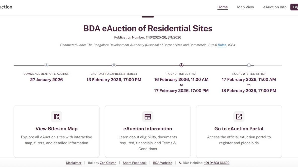 BENGALURU KARNATAKA 16/02/2026 : Pic for the Shilpa story on ‘BDA has partnered with citizen volunteer group Zen Citizen to simplify the e-auction communication’. Revamped Version.  (SCREENSHOT)