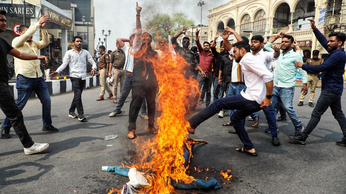 People protest and burn the effigy of Bihar cleric Maulana Abdullah Salim Chaturvedi after he made remarks about U.P. CM Yogi Adityanath’s mother while addressing a religious gathering, in Lucknow on Saturday (March 7, 2026). | Photo Credit: ANI A cleric from Bihar has been booked for allegedly making objectionable remarks about Chief Minister Yogi Adityanath’s mother, police said on Monday (March 9, 2026). An FIR was registered against Maulana Abdul Salim on March 7 at the Nagar Kotwali police station in Balrampur based on a complaint filed by district BJP president Ravi Mishra, Superintendent of Police Vikas Kumar said. Mr. Salim has been booked under sections 352 (insult) and 353-2 (public mischief) of the Bharatiya Nyaya Sanhita, he added. According to the complaint, Mr. Salim allegedly made the objectionable remarks during a religious gathering. The complainant also claimed that the cleric attempted to incite members of the minority community against laws related to cow slaughter. Mr. Mishra claimed the remarks angered BJP workers and members of the Hindu community, and threatened to disturb social harmony. The police officer said a case was registered based on the complaint, and an investigation into the matter is underway. “Further legal action will be taken based on the facts that emerge during the investigation,” Mr. Kumar said. The comments by the cleric triggered protests in several parts of the state, including Balrampur and Lucknow, where BJP workers took to street demanding strict action against him. In Lucknow, an application has also been given to the police for registration of an FIR in the matter. BJP MP from Gorakhpur, Ravi Kishan, said the remarks were “condemnable and unacceptable” and had exposed the cleric’s mindset. “In Indian culture, a mother is regarded as the highest symbol of respect and reverence. Those who insult motherhood actually expose their own values and mindset,” he said on X. “Society is watching what their religious thinking reflects about their attitude towards women. Such a mindset will never be accepted by this nation,” he said. Published – March 09, 2026 03:10 pm IST Share this: Click to share on WhatsApp (Opens in new window) WhatsApp Click to share on Facebook (Opens in new window) Facebook Click to share on Threads (Opens in new window) Threads Click to share on X (Opens in new window) X Click to share on Telegram (Opens in new window) Telegram Click to share on LinkedIn (Opens in new window) LinkedIn Click to share on Pinterest (Opens in new window) Pinterest Click to email a link to a friend (Opens in new window) Email More Click to print (Opens in new window) Print Click to share on Reddit (Opens in new window) Reddit Click to share on Tumblr (Opens in new window) Tumblr Click to share on Pocket (Opens in new window) Pocket Click to share on Mastodon (Opens in new window) Mastodon Click to share on Nextdoor (Opens in new window) Nextdoor Click to share on Bluesky (Opens in new window) Bluesky Like this:Like Loading... Post navigation Palaniswami alleges ‘murder everywhere, always’ under DMK regime in Tamil Nadu Sri Sri Vidhushekhara Bharati Swamy of Sringeri Sharada Peetham offers prayers at Srisailam
