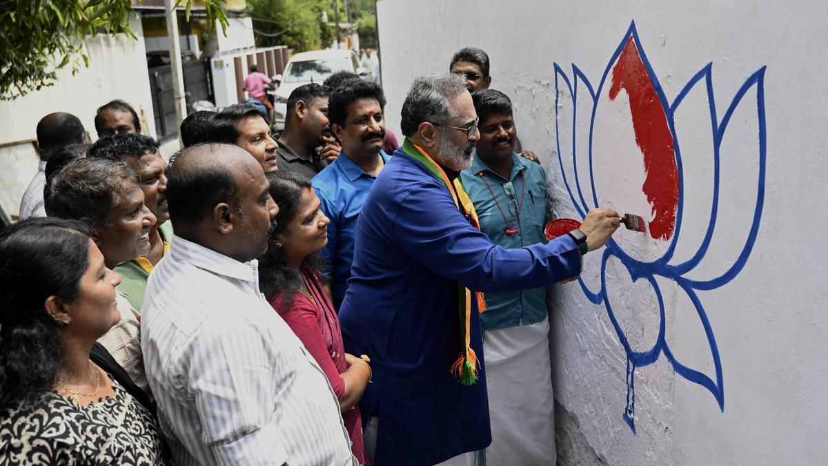 BJP State president Raieev Chandrasekhar kicked off party’s campaign in Nemom constituency by painting party symbol at a wall near Indira Gandhi Statue Junction, Thaliyal, in Thiruvananthapuram on Sunday. | Photo Credit: JAYAMOHAN A. Bharatiya Janata Party (BJP) Kerala president Rajeev Chandrasekhar on Sunday (February 22, 2026) reiterated his desire to contest the upcoming Assembly elections from the Nemom constituency. He was speaking to reporters after launching the BJP’s election wall-writing campaign in Nemom. Responding to a question on whether he would be the BJP candidate from the constituency, Mr. Chandrasekhar said, “That is my desire as well. The national leadership has to decide about it. I aim to bring changes in Thiruvananthapuram, which we have already started by winning the Thiruvananthapuram Corporation in the local body polls. “I believe the party will give me permission for that,” he added. He further mentioned that he had informed the national leadership about his wish to contest the Assembly election from Nemom two months ago. “I won’t forget the love I received from the people when I contested the Parliament election here,” he said. Though Mr. Chandrasekhar did not write his name in the BJP’s election wall painting, he coloured the party’s lotus symbol and wrote a few words in Malayalam. When asked about the red colour used for the lotus in the wall painting, he said the lotus and development would come to Nemom. “We will ensure safety and protect the faith of the people,” he said. He said the beginning of the wall painting should be seen as the start of the BJP’s election campaign. Mr. Chandrasekhar alleged that the LDF and UDF, which have governed the State, have not addressed the public’s issues and that there should be a change now. “The Nemom MLA, who is also a Minister, has done little for the constituency. We are starting a campaign for change, and both the BJP and NDA are calling for it,” he said. He added that change would come in the upcoming election and that the people would drive it. Mr. Chandrasekhar also attended various conventions in the Nemom constituency and held meetings with local leaders. Nemom is considered a favourable seat for the BJP in Thiruvananthapuram. The party’s O. Rajagopal had won the constituency in the 2016 Assembly election, before CPI(M) leader and Education Minister V. Sivankutty recaptured it in the 2021 Assembly polls. However, in the 2024 Lok Sabha election and the 2025 local body polls, the BJP secured a significant number of votes in the constituency. Published – February 22, 2026 09:35 pm IST Share this: Click to share on WhatsApp (Opens in new window) WhatsApp Click to share on Facebook (Opens in new window) Facebook Click to share on Threads (Opens in new window) Threads Click to share on X (Opens in new window) X Click to share on Telegram (Opens in new window) Telegram Click to share on LinkedIn (Opens in new window) LinkedIn Click to share on Pinterest (Opens in new window) Pinterest Click to email a link to a friend (Opens in new window) Email More Click to print (Opens in new window) Print Click to share on Reddit (Opens in new window) Reddit Click to share on Tumblr (Opens in new window) Tumblr Click to share on Pocket (Opens in new window) Pocket Click to share on Mastodon (Opens in new window) Mastodon Click to share on Nextdoor (Opens in new window) Nextdoor Click to share on Bluesky (Opens in new window) Bluesky Like this:Like Loading... Post navigation Centre sanctions ₹2,432 crore for Amended BharatNet rollout in Andhra Pradesh Tirupati gets new TDP regional office