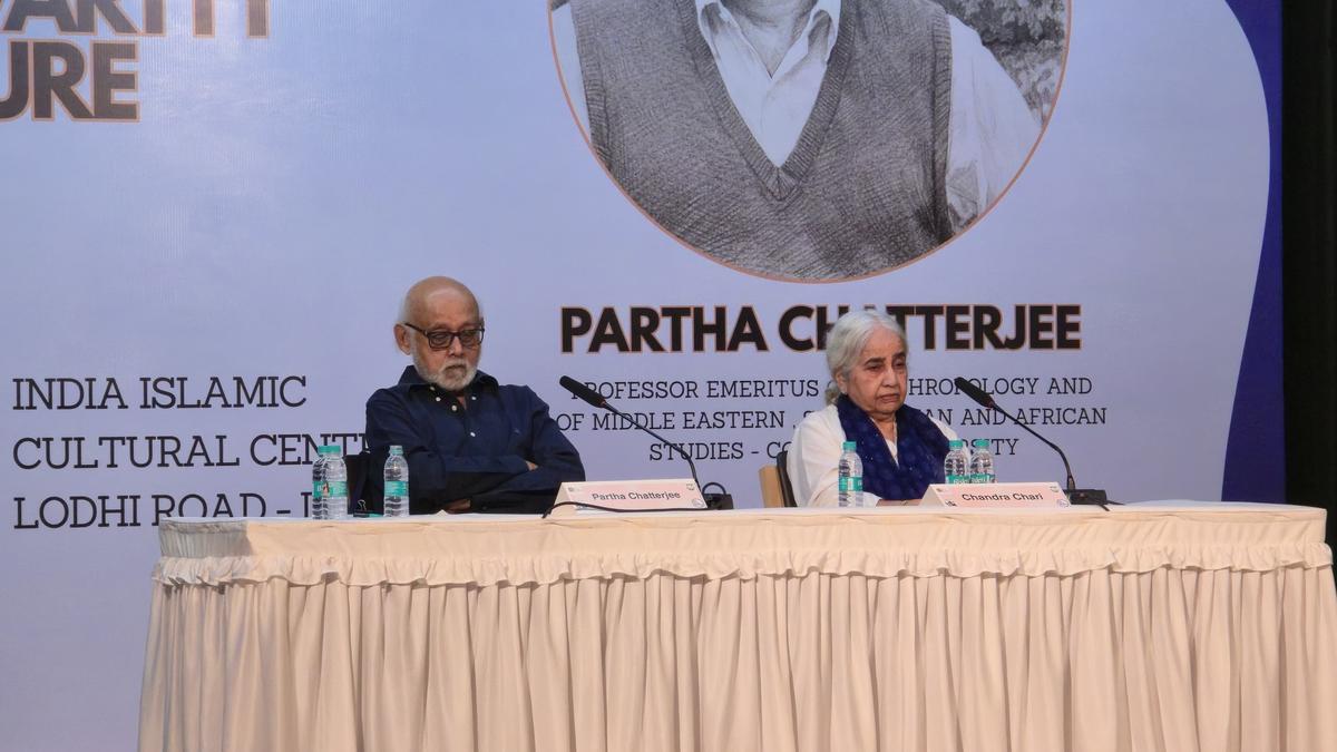 Prof. Partha Chatterjee and Chandra Chari at the fourth Nikhil Chakravartty Memorial Lecture at the India Islamic Cultural Centre in New Delhi.