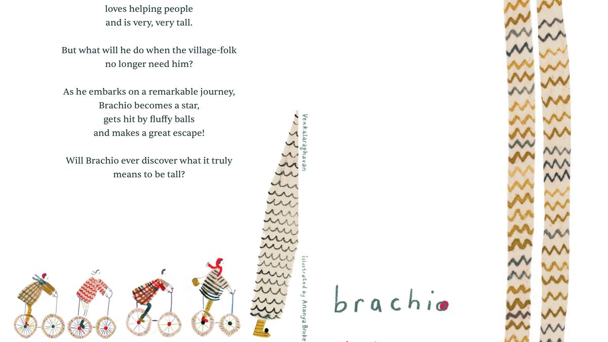 Brachio, written by Venkataraghavan, illustrated by Ananya Broker Parekh, and published by Harper Collins Children’s Books, is a tall book in many ways. The publishers chose a long book; an elongated format to echo its tall protagonist, and emotionally, it explores themes like self-discovery and belonging.