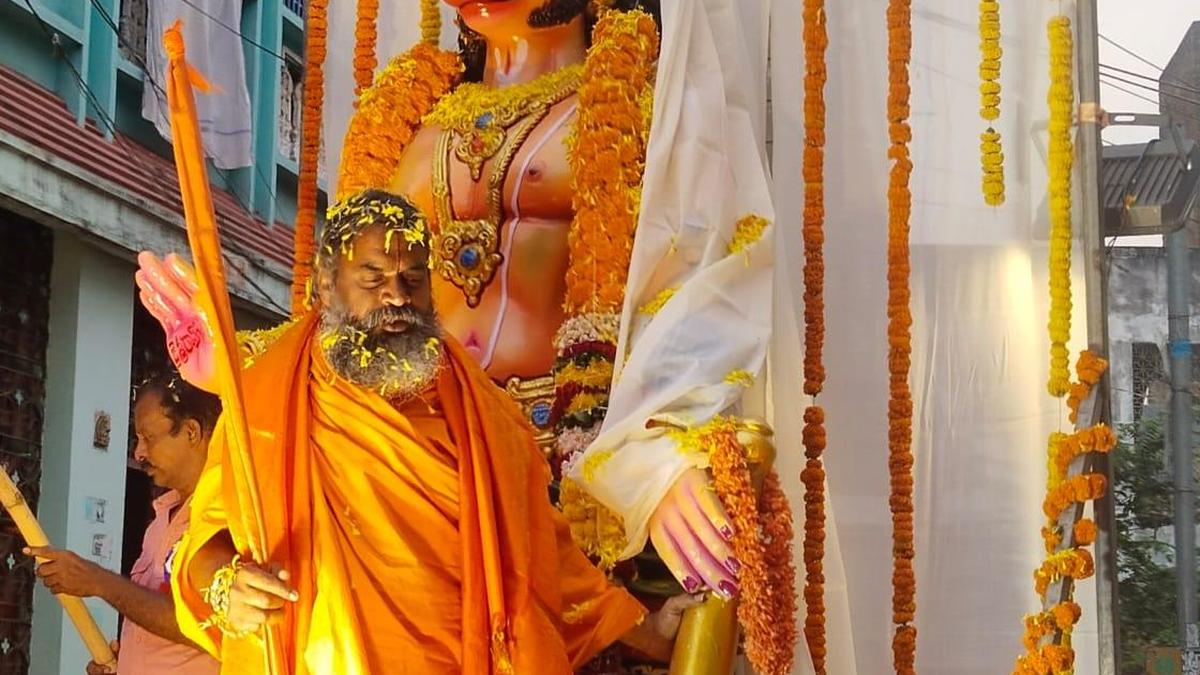 Sri Panchamukha Anjaneya Swamy temple devotees along with A.P. Sadhu Parishad president Swami Srinivasananda at the rally in Vizianagaram on Wednesday. | Photo Credit: BY ARRANGEMENT Andhra Pradesh Sadhu Parishad president Swami Srinivasananda on Wednesday urged the Endowments Department to provide funds for the renovation of temples in dilapidated condition. He was speaking as the chief guest at the Hanuman victory rally organised by the Sri Panchamukha Anjaneya Swamy temple where the Hanuman Chalisa was chanted continuously for the last 41 days within the temple premises in Vizianagaram. Speaking to media on the occasion, he said that proper maintenance of temples will enable people to participate in spiritual and cultural activities. He added that the temples controlled by charitable organisations are being maintained properly, and such care is needed for temples under the supervision of the Endowments Department. Sri Panchamukha Anjaneya Swamy temple trustees Madipilli Venkatachalam, vice-president Gokavarapu Uday, rally convener Perla Kamaraju, Adhyatmika Jnanjyoti mandal president P.V.R. Kumari and others were present. Published – April 01, 2026 08:40 pm IST Share this: Click to share on WhatsApp (Opens in new window) WhatsApp Click to share on Facebook (Opens in new window) Facebook Click to share on Threads (Opens in new window) Threads Click to share on X (Opens in new window) X Click to share on Telegram (Opens in new window) Telegram Click to share on LinkedIn (Opens in new window) LinkedIn Click to share on Pinterest (Opens in new window) Pinterest Click to email a link to a friend (Opens in new window) Email More Click to print (Opens in new window) Print Click to share on Reddit (Opens in new window) Reddit Click to share on Tumblr (Opens in new window) Tumblr Click to share on Pocket (Opens in new window) Pocket Click to share on Mastodon (Opens in new window) Mastodon Click to share on Nextdoor (Opens in new window) Nextdoor Click to share on Bluesky (Opens in new window) Bluesky Like this:Like Loading... Post navigation Vontimitta transforms into Ayodhya for ‘Sita Rama Kalyanam’ Karunashraya launches Kannada edition of caregiver series