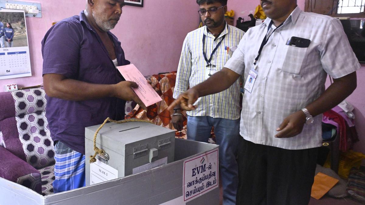 A differently abled person casting his postal ballot from his house in Kovilankulam in Aruppukottai Assembly constituency on Monday. | Photo Credit: G. MOORTHY Casting of postal ballots for people aged 85 years and above and differently abled persons began in all the seven Assembly constituency of Virudhunagar district on Monday. A total of 2,008 elderly persons and 1,845 differently abled persons have given the option of casting postal ballots sitting in their homes by submitting for 12D. The District Election Officer, N.O. Sukhaputra, has formed 49 teams comprising officials, including a micro-observer, to go door-to-door and collect the postal ballots. While Rajapalayam and Srivilliputtur Assembly constituencies will have 10 teams each, Aruppukottai Assembly seat will have seven teams, Aruppukottai and Tiruchuli will have six teams each and Sattur and Sivakasi 5 teams each. Published – April 13, 2026 09:48 pm IST Share this: Click to share on WhatsApp (Opens in new window) WhatsApp Click to share on Facebook (Opens in new window) Facebook Click to share on Threads (Opens in new window) Threads Click to share on X (Opens in new window) X Click to share on Telegram (Opens in new window) Telegram Click to share on LinkedIn (Opens in new window) LinkedIn Click to share on Pinterest (Opens in new window) Pinterest Click to email a link to a friend (Opens in new window) Email More Click to print (Opens in new window) Print Click to share on Reddit (Opens in new window) Reddit Click to share on Tumblr (Opens in new window) Tumblr Click to share on Pocket (Opens in new window) Pocket Click to share on Mastodon (Opens in new window) Mastodon Click to share on Nextdoor (Opens in new window) Nextdoor Click to share on Bluesky (Opens in new window) Bluesky Like this:Like Loading... Post navigation Woman dies as liquor shop wall collapses in Karaikal SHLCC clears 17 investment proposals worth ₹18,430.44 cr.