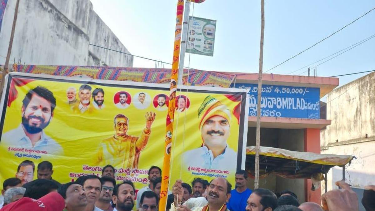 Andhra Pradesh, Srikakulam, TDP MP Kalisetti Appala Naidu hoisting the TDP flag in G. Sigadam of Srikakulam district on January 18, 2026. Photo: Special Arrangements