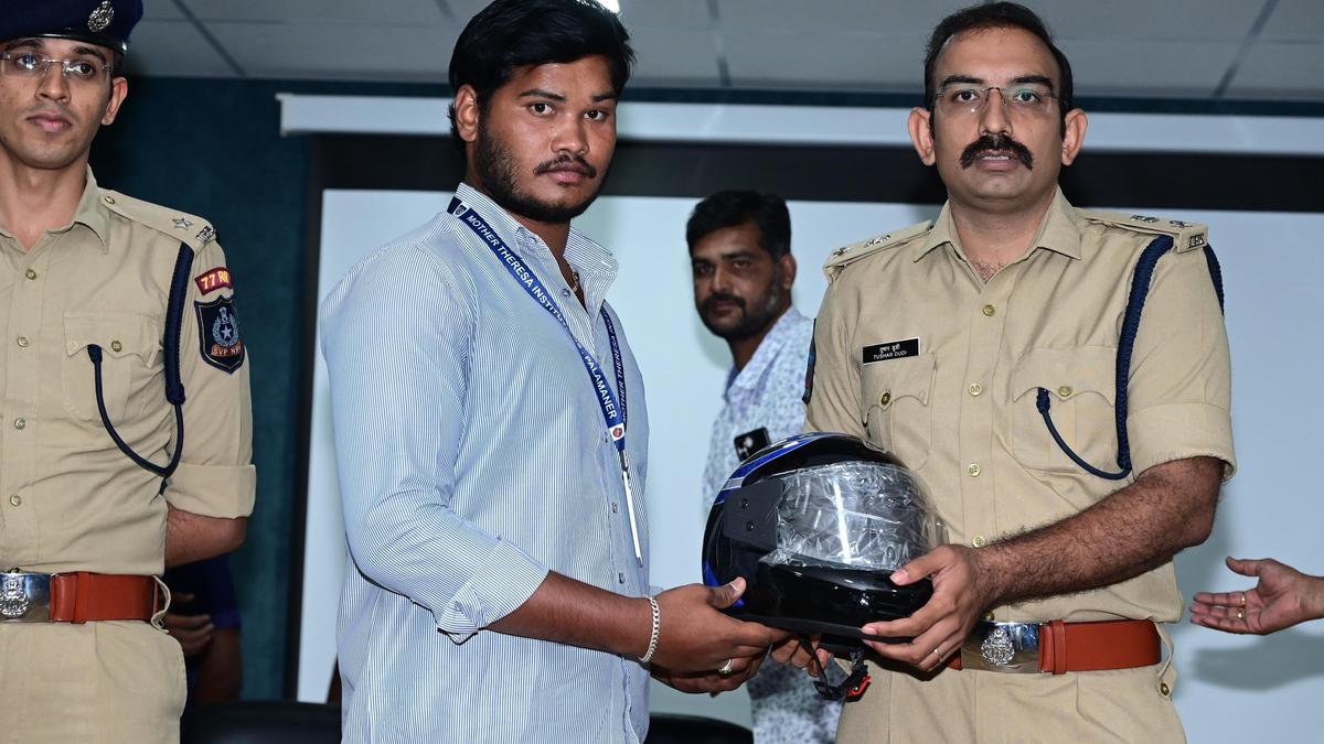 Chittoor Superintendent of Police Tushar Dudi presenting a helmet to an engineering student at the launch of Dhairya Sparsha initiative at Gangavaram in the district on Thursday. | Photo Credit: BY ARRANGEMENT Chittoor Superintendent of Police Tushar Dudi on Thursday urged students to stay away from drugs and focus on their studies and career goals while addressing an awareness programme held under the ongoing ‘Dhairya Sparsha’ initiative in the district. The SP was addressing a gathering of about 1,000 students at Melumoi village in Gangavaram mandal. Highlighting the rising consumption of drugs, particularly among the student community, Mr. Dudi said drugs might induce temporary pleasure but would lead to long-term health, mental, and family problems. He emphasised that building a drug-free society is everyone’s responsibility and encouraged students to stay away from substance abuse. The SP also spoke about cybercrime threats, including fraudulent calls and messages from criminals impersonating government officials. Students were advised to verify suspicious communications, avoid sharing personal or banking details, and report cybercrime incidents to the 1930 Cybercrime Helpline or through official portals. Given the widespread use of two-wheelers among students, Mr. Dudi stressed the importance of road safety and wearing helmets to prevent severe injuries. Later, the SP distributed helmets to students and encouraged them to take part in a follow-up awareness campaign by submitting photos of themselves wearing helmets for 28 consecutive days. The event also featured a mime performance on women’s safety by students. Additional SP Tarun Pahwa, Deputy SP Degala Prabhakar, Gangavaram Inspector Ram Bhupal, SB Inspector Murali Mohan, and faculty members from nearby educational institutions were present. Published – March 05, 2026 07:04 pm IST Share this: Click to share on WhatsApp (Opens in new window) WhatsApp Click to share on Facebook (Opens in new window) Facebook Click to share on Threads (Opens in new window) Threads Click to share on X (Opens in new window) X Click to share on Telegram (Opens in new window) Telegram Click to share on LinkedIn (Opens in new window) LinkedIn Click to share on Pinterest (Opens in new window) Pinterest Click to email a link to a friend (Opens in new window) Email More Click to print (Opens in new window) Print Click to share on Reddit (Opens in new window) Reddit Click to share on Tumblr (Opens in new window) Tumblr Click to share on Pocket (Opens in new window) Pocket Click to share on Mastodon (Opens in new window) Mastodon Click to share on Nextdoor (Opens in new window) Nextdoor Click to share on Bluesky (Opens in new window) Bluesky Like this:Like Loading... Post navigation Top news of the day: India condoles Khamenei’s death; Bihar CM Nitish Kumar files nomination for Rajya Sabha, and more Hinduism enables man to see divinity in everyone, says Vice-President