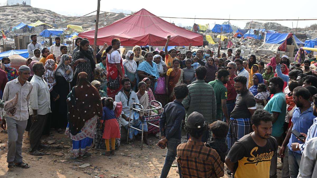 Evicted families raised slogans and staged a protest during an inspection by the BJP’s fact-finding committee at Kogilu, Yelahanka, where Greater Bengaluru Authority (GBA) demolished illegal colonies, in Bengaluru on January 3, 2026.