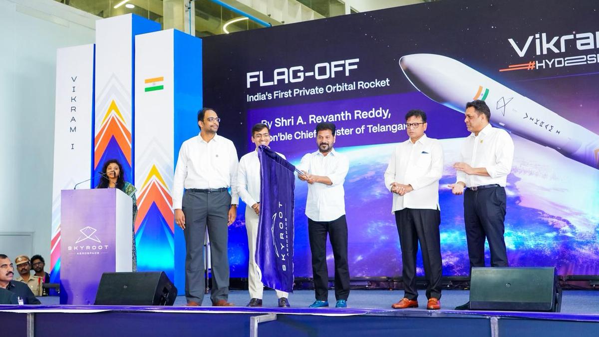 Chief Minister A. Revanth Reddy flags off Skyroot Aerospace’s orbital rocket Vikram-I components from Hyderabad to Sriharikota on Saturday. | Photo Credit: Arrangement Skyroot Aerospace’s orbital rocket Vikram-I capable of launching satellites, was flagged off from the spacetech startup’s facility in Hyderabad on Saturday by Telangana Chief Minister A. Revanth Reddy to Sriharikota, from where it is likely to be launched, to space, in June. Designed and developed in Hyderabad, the rocket, the first such privately developed in India, is 23-metre tall or the height of a seven storey building. It can carry a payload of 300 kgs though the company plans to have smaller payloads during the initial launches. Published – April 25, 2026 07:16 pm IST Share this: Click to share on WhatsApp (Opens in new window) WhatsApp Click to share on Facebook (Opens in new window) Facebook Click to share on Threads (Opens in new window) Threads Click to share on X (Opens in new window) X Click to share on Telegram (Opens in new window) Telegram Click to share on LinkedIn (Opens in new window) LinkedIn Click to share on Pinterest (Opens in new window) Pinterest Click to email a link to a friend (Opens in new window) Email More Click to print (Opens in new window) Print Click to share on Reddit (Opens in new window) Reddit Click to share on Tumblr (Opens in new window) Tumblr Click to share on Pocket (Opens in new window) Pocket Click to share on Mastodon (Opens in new window) Mastodon Click to share on Nextdoor (Opens in new window) Nextdoor Click to share on Bluesky (Opens in new window) Bluesky Like this:Like Loading... Post navigation Efforts to achieve peace, stability in region to continue: Pakistan’s Deputy PM 80 shops on NSB Road cleared during eviction drive