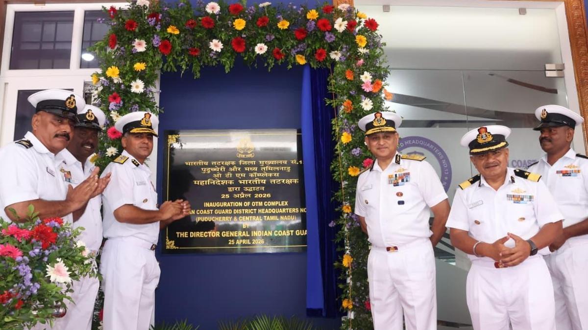The administrative complex of Coast Guard in Puducherry was inaugurated by Director General of Coast Guard Paramesh Sivamani. | Photo Credit: SPECIAL ARRANGEMENT The Coast Guard District Headquarters, Puducherry, has got a new multi-storey office complex near the helipad at Lawspet. Director General of Indian Coast Guard Paramesh Sivamani recently inaugurated the new building at a function attended by senior officers. Published – April 27, 2026 08:04 pm IST Share this: Click to share on WhatsApp (Opens in new window) WhatsApp Click to share on Facebook (Opens in new window) Facebook Click to share on Threads (Opens in new window) Threads Click to share on X (Opens in new window) X Click to share on Telegram (Opens in new window) Telegram Click to share on LinkedIn (Opens in new window) LinkedIn Click to share on Pinterest (Opens in new window) Pinterest Click to email a link to a friend (Opens in new window) Email More Click to print (Opens in new window) Print Click to share on Reddit (Opens in new window) Reddit Click to share on Tumblr (Opens in new window) Tumblr Click to share on Pocket (Opens in new window) Pocket Click to share on Mastodon (Opens in new window) Mastodon Click to share on Nextdoor (Opens in new window) Nextdoor Click to share on Bluesky (Opens in new window) Bluesky Like this:Like Loading... Post navigation Garbage hotspots on rise amid new solid waste management rules Mid-Day meal workers protest Andhra Pradesh government’s ‘Smart Kitchen’ proposal