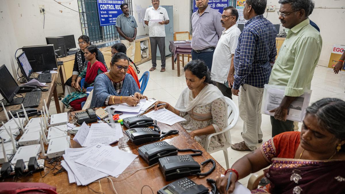 Tiruchi District Collector V. Saravanan taking stock of the situation at the election control room on Sunday. | Photo Credit: R. Vengadesh Collectors of Tiruchi, Ariyalur, Karur, Thanjavur, Tiruvarur and other districts on Sunday held meetings with election officials to enforce the Model Code of Conduct following the announcement of the Assembly election schedule. In Tiruchi, a control room has been opened to receive complaints on violation of the Model Code of Conduct (MCC), according to Collector V. Saravanan, who is also the District Election Officer. Published – March 15, 2026 08:55 pm IST Share this: Click to share on WhatsApp (Opens in new window) WhatsApp Click to share on Facebook (Opens in new window) Facebook Click to share on Threads (Opens in new window) Threads Click to share on X (Opens in new window) X Click to share on Telegram (Opens in new window) Telegram Click to share on LinkedIn (Opens in new window) LinkedIn Click to share on Pinterest (Opens in new window) Pinterest Click to email a link to a friend (Opens in new window) Email More Click to print (Opens in new window) Print Click to share on Reddit (Opens in new window) Reddit Click to share on Tumblr (Opens in new window) Tumblr Click to share on Pocket (Opens in new window) Pocket Click to share on Mastodon (Opens in new window) Mastodon Click to share on Nextdoor (Opens in new window) Nextdoor Click to share on Bluesky (Opens in new window) Bluesky Like this:Like Loading... Post navigation Parties, outfits invoke ‘Brahmin’ angle to ‘pandit’ reference in U.P. police recruitment exam Cordon and search operations held in Coimbatore in view of Assembly election