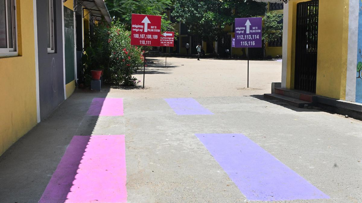 Colour-coded pathway markings leading to polling booths at the Coimbatore Corporation Primary and Middle School in Pappanaickenpudur. | Photo Credit: Siva SaravananS Coimbatore district will introduce a colour-based navigation system at polling stations for the first time to help voters locate their booths. The arrangements were discussed at a recent meeting on polling procedures held at the Collectorate, where District Election Officer and Collector Pavankumar G. Giriyappanavar briefed representatives of political parties and candidates on the measures. Published – April 21, 2026 07:01 pm IST Share this: Click to share on WhatsApp (Opens in new window) WhatsApp Click to share on Facebook (Opens in new window) Facebook Click to share on Threads (Opens in new window) Threads Click to share on X (Opens in new window) X Click to share on Telegram (Opens in new window) Telegram Click to share on LinkedIn (Opens in new window) LinkedIn Click to share on Pinterest (Opens in new window) Pinterest Click to email a link to a friend (Opens in new window) Email More Click to print (Opens in new window) Print Click to share on Reddit (Opens in new window) Reddit Click to share on Tumblr (Opens in new window) Tumblr Click to share on Pocket (Opens in new window) Pocket Click to share on Mastodon (Opens in new window) Mastodon Click to share on Nextdoor (Opens in new window) Nextdoor Click to share on Bluesky (Opens in new window) Bluesky Like this:Like Loading... Post navigation Initiative launched for waste management along Karnataka’s coastline Four arrested in chain-snatching case in Hyderabad