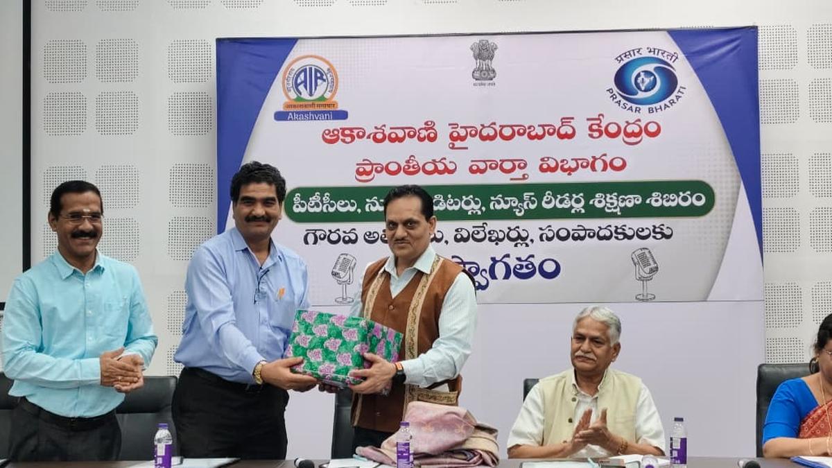 Director General of All India Radio Rajeev Kumar Jain at a training programme for part-time correspondents, casual news editors and news readers, organised by the AIR Hyderabad. M.S. Mahesh, head of the Regional News Unit, and K. Sreenivas Reddy, chairman of Telangana Media Academy, were also present. | Photo Credit: By arrangement All India Radio continues to retain its distinct identity and credibility in news dissemination even in the rapidly evolving digital era, director general of All India Radio Rajeev Kumar Jain said on Tuesday. Addressing a training programme organised by the regional news unit of All India Radio Hyderabad, he said while traditional radio news broadcasting remains its core strength, the public broadcaster has also carved a niche for itself on social media. Published – March 24, 2026 07:41 pm IST Share this: Click to share on WhatsApp (Opens in new window) WhatsApp Click to share on Facebook (Opens in new window) Facebook Click to share on Threads (Opens in new window) Threads Click to share on X (Opens in new window) X Click to share on Telegram (Opens in new window) Telegram Click to share on LinkedIn (Opens in new window) LinkedIn Click to share on Pinterest (Opens in new window) Pinterest Click to email a link to a friend (Opens in new window) Email More Click to print (Opens in new window) Print Click to share on Reddit (Opens in new window) Reddit Click to share on Tumblr (Opens in new window) Tumblr Click to share on Pocket (Opens in new window) Pocket Click to share on Mastodon (Opens in new window) Mastodon Click to share on Nextdoor (Opens in new window) Nextdoor Click to share on Bluesky (Opens in new window) Bluesky Like this:Like Loading... Post navigation Kerala Assembly polls 2026: Electioneering enters next phase in Kottayam T.N. Assembly election 2026| Vehicles for election campaigns take shape in Coimbatore