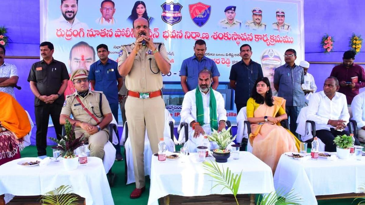 DGP B. Shivadhar Reddy speaking at the foundation stone laying ceremony of the new police station building in Rudrangi of Rajanna Sircilla district on Friday. DGP B. Shivadhar Reddy has said the Police department has placed a special focus on strengthening citizen-centric policing with a thrust on curbing cybercrime, drug menace and ensuring road safety through awareness and enforcement. He was speaking after laying the foundation stone for the new police station building in Rudrangi mandal headquarters town of Rajanna Sircilla district on Friday. Published – April 24, 2026 07:24 pm IST Share this: Click to share on WhatsApp (Opens in new window) WhatsApp Click to share on Facebook (Opens in new window) Facebook Click to share on Threads (Opens in new window) Threads Click to share on X (Opens in new window) X Click to share on Telegram (Opens in new window) Telegram Click to share on LinkedIn (Opens in new window) LinkedIn Click to share on Pinterest (Opens in new window) Pinterest Click to email a link to a friend (Opens in new window) Email More Click to print (Opens in new window) Print Click to share on Reddit (Opens in new window) Reddit Click to share on Tumblr (Opens in new window) Tumblr Click to share on Pocket (Opens in new window) Pocket Click to share on Mastodon (Opens in new window) Mastodon Click to share on Nextdoor (Opens in new window) Nextdoor Click to share on Bluesky (Opens in new window) Bluesky Like this:Like Loading... Post navigation About ₹1.4 crore seized in Tiruppur district by flying squads returned as per ECI norms Actual polling numbers show marginal increase in votes in some of the constituencies in Coimbatore district