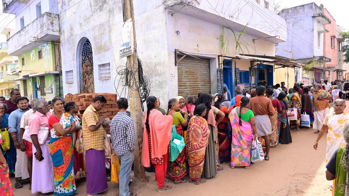 Ration card holders waiting in a long queue to receive Pongal gift hamper at a ration shop at Barathipuram in Dindigul on Thursday. | Photo Credit: KARTHIKEYAN G Distribution of Pongal gift hampers began in Dindigul, Theni and Sivaganga districts on Thursday. The gift hamper contains one kg of raw rice, one kg of sugar, one sugarcane, dhoti and saree and ₹3,000 in cash. In Dindigul district, Minister for Rural Development I. Periyasamy inaugurated the scheme at the fair price shops in Sithayankottai town panchayat and Sitharevu panchayat of Athoor Union in the presence of Dindigul Collector S. Saravanan. A total of 6.94 lakh card holders in the district would benefit under the scheme. In Theni district, MP Thanga Tamil Selvan, Periyakulam MLA K.S. Saravana Kumar and Theni Collector Ranjeet Singh inaugurated the scheme at a fair price shop in Theni Allinagaram Municipality. A total of 4.30 lakh card holders in the district would benefit. In Sivaganga district, Sivaganga Collector K. Porkodi inaugurated the scheme at a fair price shop in Sivaganga Municipality. A total of 4.19 lakh card holders in the district would benefit. Published – January 08, 2026 09:19 pm IST Share this: Click to share on WhatsApp (Opens in new window) WhatsApp Click to share on Facebook (Opens in new window) Facebook Click to share on Threads (Opens in new window) Threads Click to share on X (Opens in new window) X Click to share on Telegram (Opens in new window) Telegram Click to share on LinkedIn (Opens in new window) LinkedIn Click to share on Pinterest (Opens in new window) Pinterest Click to email a link to a friend (Opens in new window) Email More Click to print (Opens in new window) Print Click to share on Reddit (Opens in new window) Reddit Click to share on Tumblr (Opens in new window) Tumblr Click to share on Pocket (Opens in new window) Pocket Click to share on Mastodon (Opens in new window) Mastodon Click to share on Nextdoor (Opens in new window) Nextdoor Click to share on Bluesky (Opens in new window) Bluesky Like this:Like Loading... Post navigation Karnataka government to offer A-Khata status to B-Khata properties in urban local bodies jurisdiction A parliamentary standing committee visited Coimbatore on January 8 to study the impact on US tariffs on Indian textile and garment exporters