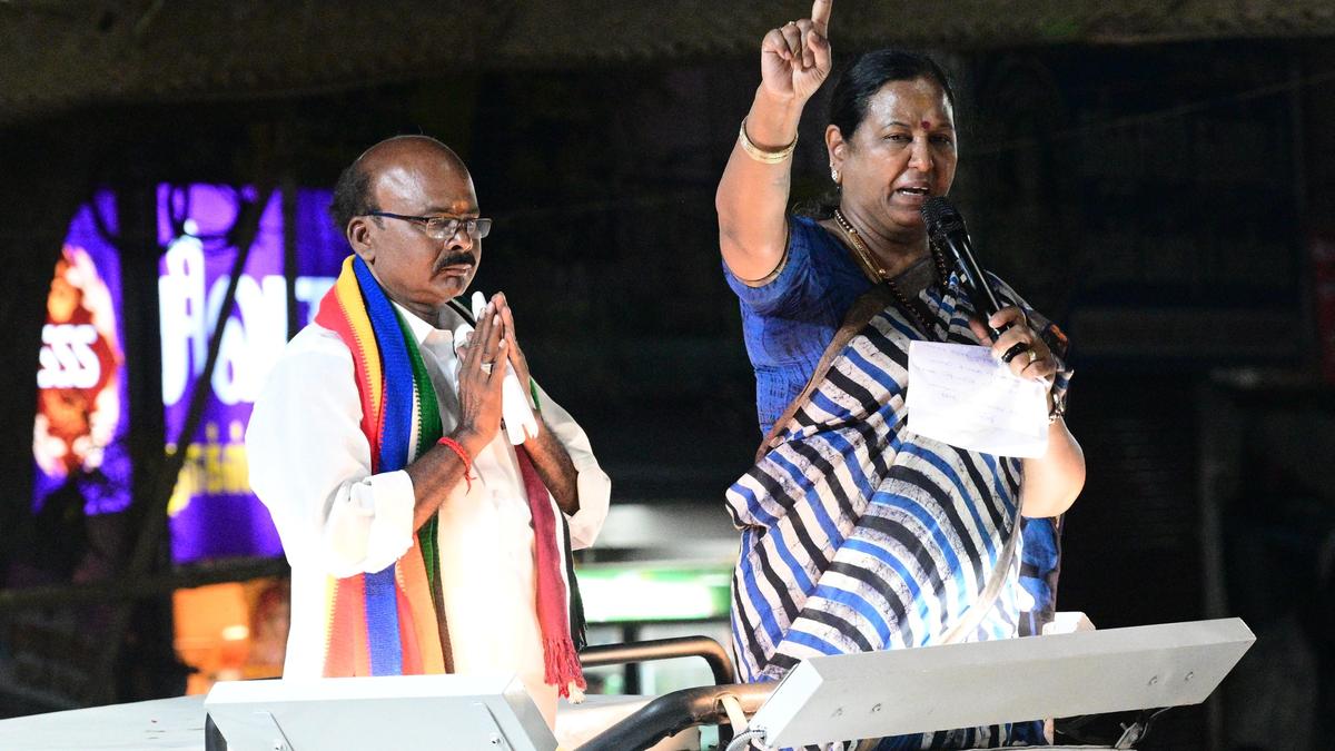 DMDK general secretary Premallatha Vijayakant campaigning for the party’s Omalur Assembly constituency candidate A.R. Elangovan at Omalur in Salem district in Tamil Nadu on Saturday. | Photo Credit: E.LAKSHMI NARAYANAN DMDK general secretary Premallatha Vijayakant on Saturday said the DMK alliance will win over 200 seats in this Assembly elections. Addressing the public at six locations in the Omalur constituency, she said the DMK alliance will form government for the seventh time and M.K. Stalin will become Chief Minister for a second time. Published – April 11, 2026 10:52 pm IST Share this: Click to share on WhatsApp (Opens in new window) WhatsApp Click to share on Facebook (Opens in new window) Facebook Click to share on Threads (Opens in new window) Threads Click to share on X (Opens in new window) X Click to share on Telegram (Opens in new window) Telegram Click to share on LinkedIn (Opens in new window) LinkedIn Click to share on Pinterest (Opens in new window) Pinterest Click to email a link to a friend (Opens in new window) Email More Click to print (Opens in new window) Print Click to share on Reddit (Opens in new window) Reddit Click to share on Tumblr (Opens in new window) Tumblr Click to share on Pocket (Opens in new window) Pocket Click to share on Mastodon (Opens in new window) Mastodon Click to share on Nextdoor (Opens in new window) Nextdoor Click to share on Bluesky (Opens in new window) Bluesky Like this:Like Loading... Post navigation Bengal polls 2026: Modi, Mamata spar over UCC implementation Prominent candidates in Chennai file nomination papers, set out to canvass votes