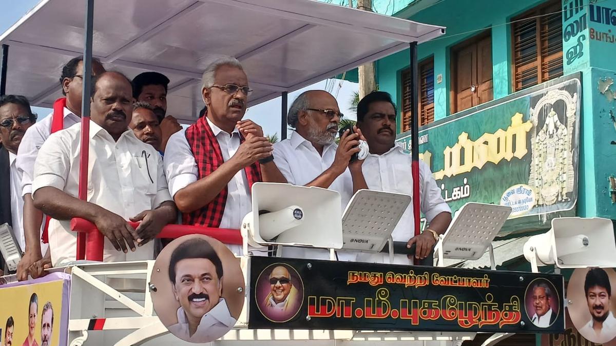 Party insiders, however, say the discontent is largely candidate-specific and has not affected support for the party. Senior leaders, including Chief Minister M. K. Stalin and Udhayanidhi Stalin, have campaigned here. In a notable shift over the past three days, Mr. Murugan has brought in a broader pool of district-level functionaries and prominent party faces to intensify campaigning, moving beyond his earlier reliance on local cadres. Daily outreach efforts, including village-level meetings and interactions with community leaders, have been stepped up. Party wings such as the farmers’ and women’s wings are also active on the ground. Though there was resistance in a few villages initially, cadres say they have managed to regain access. While some discontent persists among sections of the fishing community, minority voters in areas such as Kuthalam are expected to back the DMK despite local grievances.