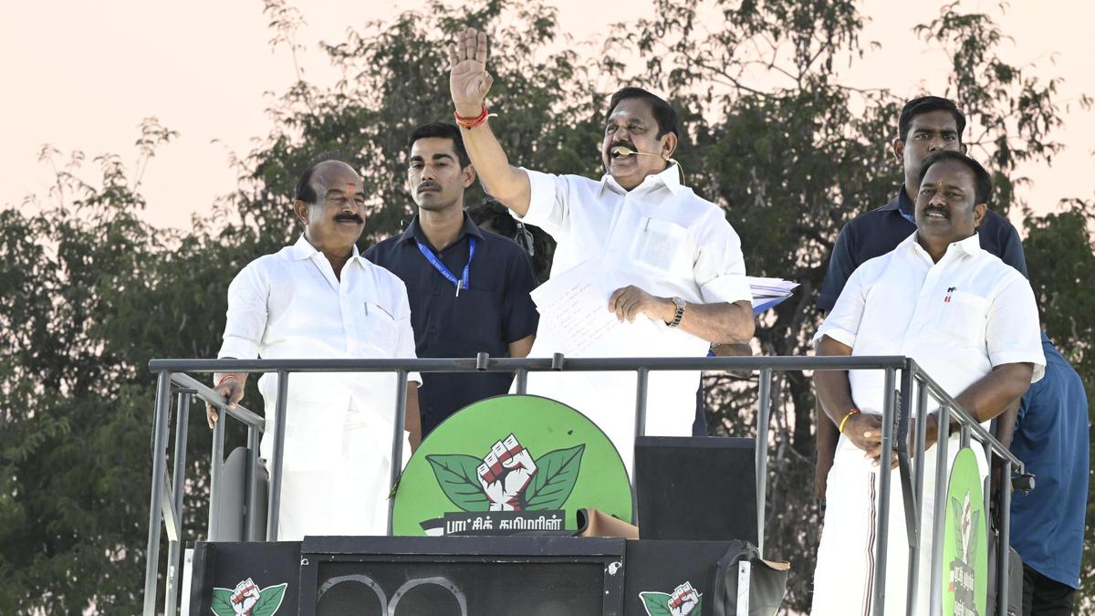 AIADMK general secretary Edappadi K. Palaniswami addressing a public meeting at Perundurai in Erode district as part of his State-wide tour on Sunday. | Photo Credit: GOVARTHAN M AIADMK recognises the individuals who work for it, unlike the DMK that prioritises the CM’s family; Magalir Urimai Thittam was implemented only after pressure from AIADMK, he says AIADMK general secretary Edappadi K. Palaniswami on Sunday said the ruling DMK would face the consequences for associating with “traitors” expelled from the AIADMK, and that their inclusion would eventually lead to the DMK’s downfall. Published – March 08, 2026 11:51 pm IST Share this: Click to share on WhatsApp (Opens in new window) WhatsApp Click to share on Facebook (Opens in new window) Facebook Click to share on Threads (Opens in new window) Threads Click to share on X (Opens in new window) X Click to share on Telegram (Opens in new window) Telegram Click to share on LinkedIn (Opens in new window) LinkedIn Click to share on Pinterest (Opens in new window) Pinterest Click to email a link to a friend (Opens in new window) Email More Click to print (Opens in new window) Print Click to share on Reddit (Opens in new window) Reddit Click to share on Tumblr (Opens in new window) Tumblr Click to share on Pocket (Opens in new window) Pocket Click to share on Mastodon (Opens in new window) Mastodon Click to share on Nextdoor (Opens in new window) Nextdoor Click to share on Bluesky (Opens in new window) Bluesky Like this:Like Loading... Post navigation Indian Women’s Press Corps reiterates commitment to support safe, equitable spaces in media Working with coach Vishnu Prasanna fast-tracked GM Aarav’s rise