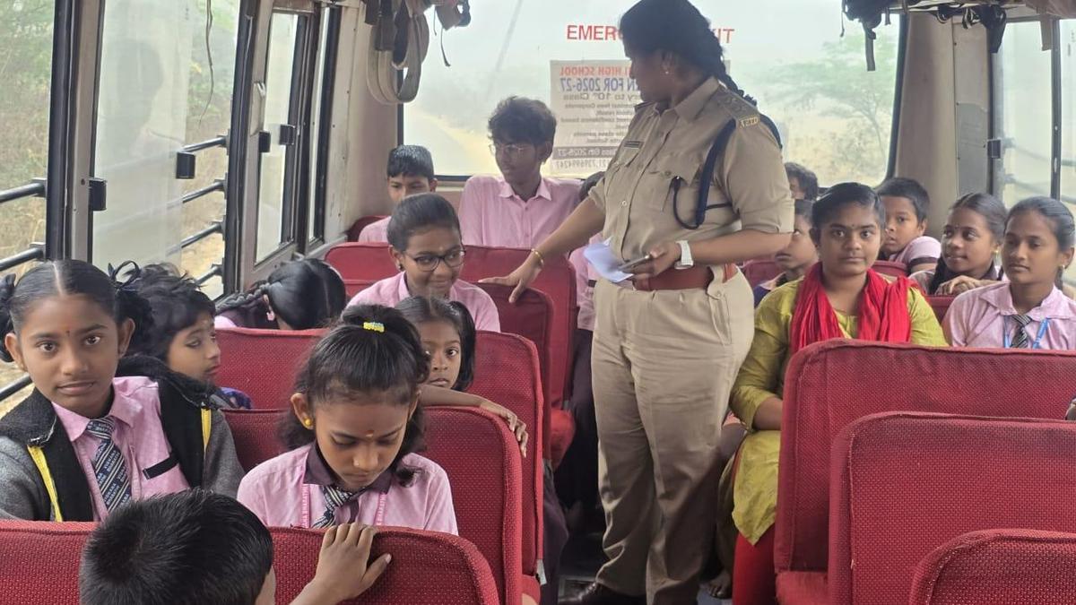A transport official inspecting a school bus in Vizianagaram. | Photo Credit: BY ARRANGEMENT Deputy Transport Commissioner(DTC) of Vizianagaram district D. Mani Kumar has directed the managements of all schools and colleges to strictly adhere to safety norms in the transportation of students by buses and vans. He said special teams of the Transport Department conducted inspections simultaneously in different parts of the district to check the fitness and safety standards of school and college buses. Mr. Mani Kumar asked the managements to appoint well trained drivers and attendants so that safety norms are followed while operating the vehicles. He advised them to install speed governors to ensure that drivers do not exceed the prescribed speed limits. Emergency exit doors should also be maintained in proper working condition. He added that all buses would be issued fitness certificates only after thorough inspection during the summer holidays. Published – March 06, 2026 06:31 pm IST Share this: Click to share on WhatsApp (Opens in new window) WhatsApp Click to share on Facebook (Opens in new window) Facebook Click to share on Threads (Opens in new window) Threads Click to share on X (Opens in new window) X Click to share on Telegram (Opens in new window) Telegram Click to share on LinkedIn (Opens in new window) LinkedIn Click to share on Pinterest (Opens in new window) Pinterest Click to email a link to a friend (Opens in new window) Email More Click to print (Opens in new window) Print Click to share on Reddit (Opens in new window) Reddit Click to share on Tumblr (Opens in new window) Tumblr Click to share on Pocket (Opens in new window) Pocket Click to share on Mastodon (Opens in new window) Mastodon Click to share on Nextdoor (Opens in new window) Nextdoor Click to share on Bluesky (Opens in new window) Bluesky Like this:Like Loading... Post navigation Welfare assistance worth ₹44 crore disbursed to 7,000 beneficiaries Balanced budget, both sweet and bitter like Ugadi, says MIA