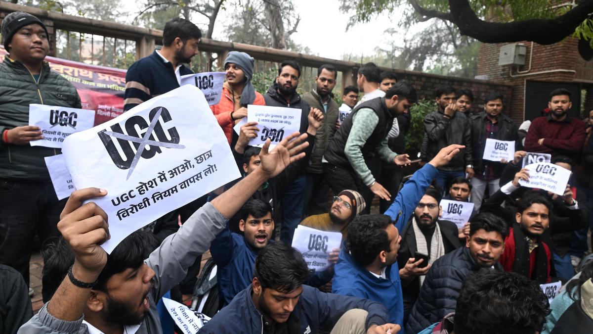 Student protesting on UGC issue at Delhi University, in New Delhi on January 28, 2026. | Photo Credit: The Hindu Days after clashes during a protest in support of UGC equity rules, Delhi University (DU) has prohibited protests, public meetings, processions, and demonstrations of any kind for a period of one month. DU Proctor Manoj Kumar Singh on Tuesday (February 17, 2026) issued an order stating, “This order is issued in view of information received indicating that unrestricted public gatherings, processions, or demonstrations on campus may lead to obstruction of traffic, threats to human life, and disturbance of public peace.” Also Read | Police summon AISA, Youtuber and her associates over scuffle in DU It added that in the past, organisers have failed to control such protests, and have escalated widely, resulting in “deterioration of law and order” within the campus. The order states that it will be in effect for a period of one month, unless withdrawn earlier. It further details the kind of protests that are temporarily prohibited including holding public meetings, rallies, dharna, protests or agitations, assemblies of five or more people, engaging in any activity that may affect general tranquillity of the public or the smooth flow of traffic, shouting slogans and making speeches, and carrying hazardous materials. Mr. Singh told The Hindu that it was issued in light of the recent incident on campus where clashes took place, adding, “The order has been issued to ensure peace and tranquillity on campus”. On Friday, All India Students’ Association (AISA) had organised a demonstration in solidarity with the UGC (Promotion of Equity in Higher Educational Institutions) 2026. While AISA alleged that Youtuber Ruchi Tiwari hurled casteist slurs at its members, the Youtuber said she was allegedly manhandled and assaulted by the protesters. The police have filed two FIRs, after both sides filed police complaints. The UGC equity rules were stayed by the Supreme Court last month, dividing students and youth into two: with some backing the rules and providing instances of caste discrimination on campus, and others alleging that the rules “discriminate against the general category” by leaving them “out of the ambit of caste discrimination”. Published – February 17, 2026 02:57 pm IST Share this: Click to share on WhatsApp (Opens in new window) WhatsApp Click to share on Facebook (Opens in new window) Facebook Click to share on Threads (Opens in new window) Threads Click to share on X (Opens in new window) X Click to share on Telegram (Opens in new window) Telegram Click to share on LinkedIn (Opens in new window) LinkedIn Click to share on Pinterest (Opens in new window) Pinterest Click to email a link to a friend (Opens in new window) Email More Click to print (Opens in new window) Print Click to share on Reddit (Opens in new window) Reddit Click to share on Tumblr (Opens in new window) Tumblr Click to share on Pocket (Opens in new window) Pocket Click to share on Mastodon (Opens in new window) Mastodon Click to share on Nextdoor (Opens in new window) Nextdoor Click to share on Bluesky (Opens in new window) Bluesky Like this:Like Loading... Post navigation At Chennai Comic Con 2026, nostalgic comics and homegrown narratives came together in a vibrant celebration of fandom ‘North feels fear, South instils hope’: Farooq Abdullah makes emotional appeal for unity against ‘fascist forces’
