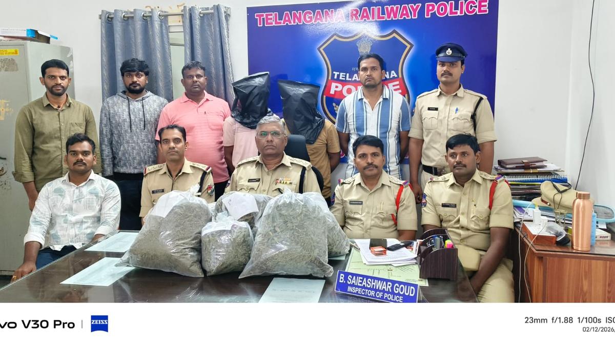 Police presenting the accused before the media along with the seized contraband on Friday. | Photo Credit: By Arrangement Two persons were arrested with 18 kilograms of dry ganja worth ₹9.14 lakh while they were transporting the banned substance from Balugaon in Odisha to Secunderabad during an operation by the Government Railway Police (GRP) and the Railway Protection Force (RPF) at Secunderabad Railway Station. The accused were identified as 25-year-old Abhishek Singh alias Golu Singh, a native of Ballia district in Uttar Pradesh, and 23-year-old Abhishek Kumar Singh alias Abinash, a hotel worker from Kolkata. Police said the two are relatives. On Thursday, GRP and RPF sleuths jointly conducted surprise checks targeting drug peddlers on platforms and trains at Secunderabad Railway Station. During the operation, they apprehended the two accused. According to investigators, the prime accused, identified as Digal of Chilka in Odisha, is absconding. Police said that about two months ago, Abhishek Singh had travelled to Bhubaneswar in search of employment, where he came into contact with Digal, who disclosed that he was engaged in illegal transportation of ganja to various States, and was making substantial profits. Lured by an offer of ₹15,000 per trip, Abhishek Singh allegedly agreed to assist in transporting the contraband. On Tuesday, Digal instructed him to bring another trusted associate, promising payment of ₹15,000 to each person. Abhishek Singh then contacted Abinash, who agreed to join him. As per the plan, both accused met at Bhubaneswar Railway Station and boarded the Konark Express with general tickets bound for Secunderabad. On Wednesday, at Balugaon Railway Station, Digal allegedly handed over two bags containing 18.288 kilograms of ganja and instructed them to deliver the consignment at Secunderabad Railway Station. They were told to wait in the general waiting hall, where an associate would collect the contraband. The duo reached Secunderabad Railway Station at about 11.30 a.m. on Thursday and proceeded to the waiting hall. At around noon, the railway police apprehended them and seized the ganja valued at ₹9,14,400. Efforts are under way to trace the absconding accused. Published – February 13, 2026 07:40 pm IST Share this: Click to share on WhatsApp (Opens in new window) WhatsApp Click to share on Facebook (Opens in new window) Facebook Click to share on Threads (Opens in new window) Threads Click to share on X (Opens in new window) X Click to share on Telegram (Opens in new window) Telegram Click to share on LinkedIn (Opens in new window) LinkedIn Click to share on Pinterest (Opens in new window) Pinterest Click to email a link to a friend (Opens in new window) Email More Click to print (Opens in new window) Print Click to share on Reddit (Opens in new window) Reddit Click to share on Tumblr (Opens in new window) Tumblr Click to share on Pocket (Opens in new window) Pocket Click to share on Mastodon (Opens in new window) Mastodon Click to share on Nextdoor (Opens in new window) Nextdoor Click to share on Bluesky (Opens in new window) Bluesky Like this:Like Loading... Post navigation V-C N.K. Lokanath tells MBA students to be competitive Labour inspectors warned of strict action if child labour cases are not identified and such illegal practices are not curbed