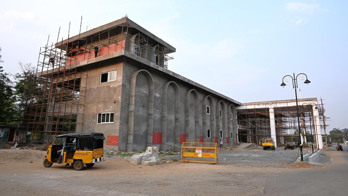 The imposing front elevation of the new building, under construction as part of the redevelopment of Duvvada Railway Station, in Visakhapatnam. | Photo Credit: V. RAJU An imposing new building is coming up on Platform No. 1 side of Duvvada railway station as part of its redevelopment under the Amrit Bharat Station Scheme. The building, located ahead of the NTPC railway line, will eliminate the need for passengers to enter the platform area for basic services. Passengers using Platform No. 1 have long faced an unusual problem. Unlike most stations, they could not directly access the station building for ticketing, reservations or enquiries. This was due to a dedicated railway line laid for goods trains carrying raw materials to the NTPC Simhadri Power Plant, which runs in front of the station building. A high wall was constructed to prevent passengers from crossing the track. However, NTPC had provided a ramp-type foot overbridge to connect the road to the station building. Published – March 31, 2026 07:13 pm IST Share this: Click to share on WhatsApp (Opens in new window) WhatsApp Click to share on Facebook (Opens in new window) Facebook Click to share on Threads (Opens in new window) Threads Click to share on X (Opens in new window) X Click to share on Telegram (Opens in new window) Telegram Click to share on LinkedIn (Opens in new window) LinkedIn Click to share on Pinterest (Opens in new window) Pinterest Click to email a link to a friend (Opens in new window) Email More Click to print (Opens in new window) Print Click to share on Reddit (Opens in new window) Reddit Click to share on Tumblr (Opens in new window) Tumblr Click to share on Pocket (Opens in new window) Pocket Click to share on Mastodon (Opens in new window) Mastodon Click to share on Nextdoor (Opens in new window) Nextdoor Click to share on Bluesky (Opens in new window) Bluesky Like this:Like Loading... Post navigation Minority institutions in Tiruchi hit by decline in UGC grants Changes effected in train services for foot over bridge construction in Podanur Junction