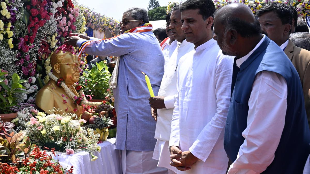 Chief Minister Siddaramaiah and other leaders during the birth anniversary celebrations of B.R. Ambedkar at the Vidhana Soudha in Bengaluru on Tuesday. | Photo Credit: SUDHAKARA JAIN Stating that education was a powerful tool to break out of all shackles, Chief Minister Siddaramaiah on Tuesday said that it was impossible to create an egalitarian society without an education that encompassed rational, scientific and humanitarian approach. “If B.R. Ambedkar was not educated and if he did not have the fighting spirit, we would not have got the Constitution. And I have become the Chief Minister thanks to the Constitution given by Ambedkar,” the Chief Minister said, during Ambedkar’s birth anniversary celebrations here. Published – April 14, 2026 10:43 pm IST Share this: Click to share on WhatsApp (Opens in new window) WhatsApp Click to share on Facebook (Opens in new window) Facebook Click to share on Threads (Opens in new window) Threads Click to share on X (Opens in new window) X Click to share on Telegram (Opens in new window) Telegram Click to share on LinkedIn (Opens in new window) LinkedIn Click to share on Pinterest (Opens in new window) Pinterest Click to email a link to a friend (Opens in new window) Email More Click to print (Opens in new window) Print Click to share on Reddit (Opens in new window) Reddit Click to share on Tumblr (Opens in new window) Tumblr Click to share on Pocket (Opens in new window) Pocket Click to share on Mastodon (Opens in new window) Mastodon Click to share on Nextdoor (Opens in new window) Nextdoor Click to share on Bluesky (Opens in new window) Bluesky Like this:Like Loading... Post navigation Xi calls for closer ties with Spain in face of global ‘chaos’ Modi, Kharge exchange greetings at event to mark Ambedkar Jayanti
