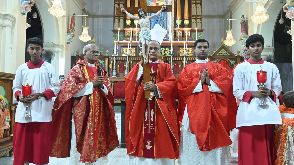 Retd. Bishop Gerald Isaac Lobo of Udupi Diocese leading the liturgical services on Good Friday at the Milagres Cathedral in Kallianapura in Udupi district on Friday. | Photo Credit: UMESH S. SHETTIGAR The faithful observed Good Friday with solemnity and deep religious fervour in churches across Udupi and Dakshina Kannada districts marking the crucifixion and sacrifice of Jesus Christ on Friday, April 3. Retd. Bishop Gerald Isaac Lobo of Udupi Diocese led the liturgical services at the Milagres Catholic Cathedral, the official seat of the Bishop. In his message, the Bishop said, “Jesus Christ showed through his work that there is no greater love than the love of giving his life for his friend. Jesus Christ, who suffered a cruel death on the Cross, preached the message of love, forgiveness, and sacrifice to the world.” Published – April 03, 2026 07:30 pm IST Share this: Click to share on WhatsApp (Opens in new window) WhatsApp Click to share on Facebook (Opens in new window) Facebook Click to share on Threads (Opens in new window) Threads Click to share on X (Opens in new window) X Click to share on Telegram (Opens in new window) Telegram Click to share on LinkedIn (Opens in new window) LinkedIn Click to share on Pinterest (Opens in new window) Pinterest Click to email a link to a friend (Opens in new window) Email More Click to print (Opens in new window) Print Click to share on Reddit (Opens in new window) Reddit Click to share on Tumblr (Opens in new window) Tumblr Click to share on Pocket (Opens in new window) Pocket Click to share on Mastodon (Opens in new window) Mastodon Click to share on Nextdoor (Opens in new window) Nextdoor Click to share on Bluesky (Opens in new window) Bluesky Like this:Like Loading... Post navigation Residents raise concern over increase in dog bite cases at Kannampalayam near Sulur Heavy vehicles banned on Bargur ghat road from April 6 to 16