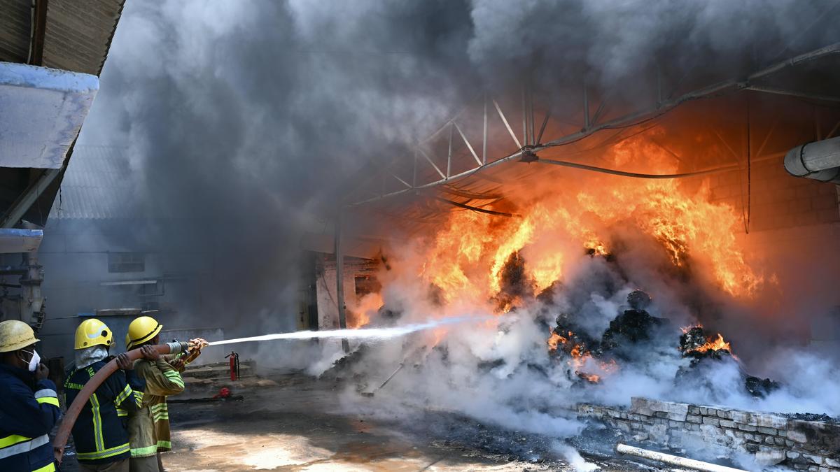 Firefighters dousing the flames that broke out in the warehouse of a private company in Thoothukudi on Monday. | Photo Credit: N. RAJESH Raw materials worth several lakhs of rupees were destroyed in a major fire that broke out at the warehouse of a diaper manufacturing unit on Ettayapuram Road in Thoothukudi on Monday. Police said a sudden fire broke out in the warehouse, spread rapidly and engulfed the entire area. Thick smoke billowed from the site and covered the surrounding locality. On receiving information, Fire and Rescue Services personnel rushed to the spot and began firefighting operations. Published – March 09, 2026 07:11 pm IST Share this: Click to share on WhatsApp (Opens in new window) WhatsApp Click to share on Facebook (Opens in new window) Facebook Click to share on Threads (Opens in new window) Threads Click to share on X (Opens in new window) X Click to share on Telegram (Opens in new window) Telegram Click to share on LinkedIn (Opens in new window) LinkedIn Click to share on Pinterest (Opens in new window) Pinterest Click to email a link to a friend (Opens in new window) Email More Click to print (Opens in new window) Print Click to share on Reddit (Opens in new window) Reddit Click to share on Tumblr (Opens in new window) Tumblr Click to share on Pocket (Opens in new window) Pocket Click to share on Mastodon (Opens in new window) Mastodon Click to share on Nextdoor (Opens in new window) Nextdoor Click to share on Bluesky (Opens in new window) Bluesky Like this:Like Loading... Post navigation Kerala brings out Cyber Safety Protocol in public schools amid AI surge The challenge is in adapting to technological changes, effectively using them, journalism students told