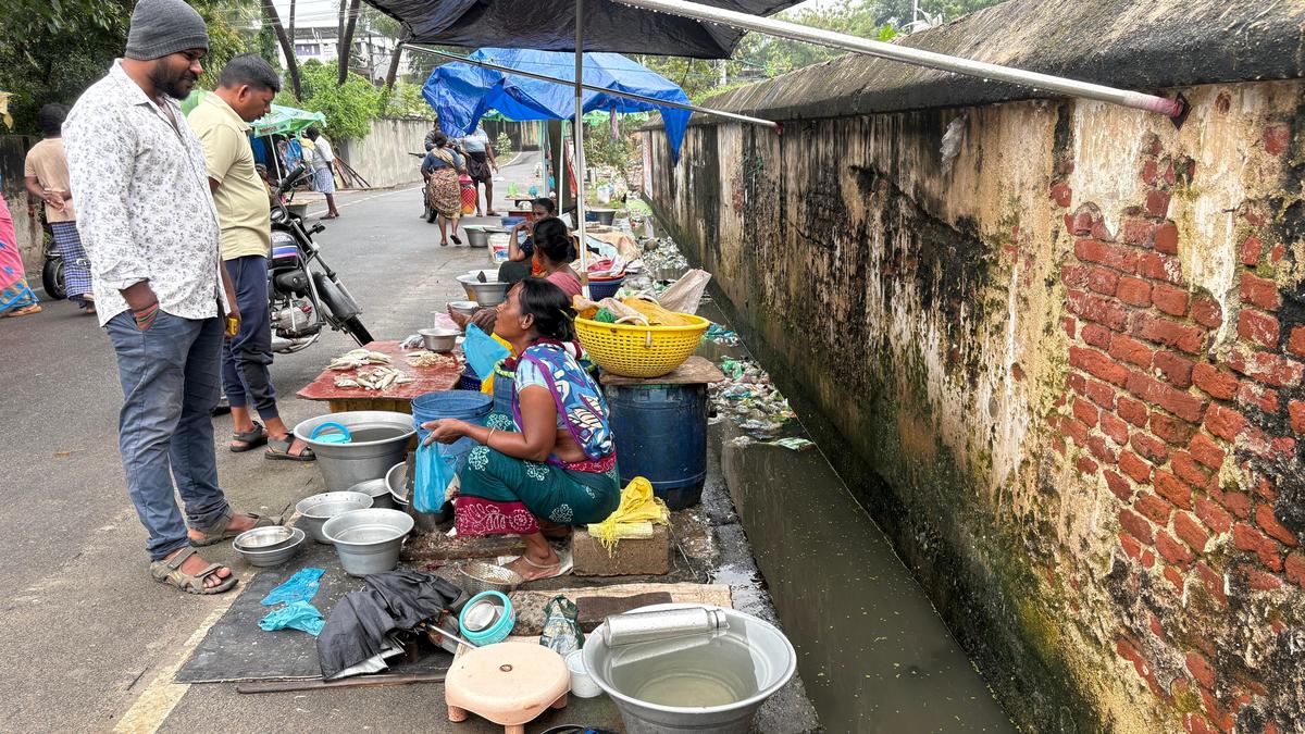 Fisherwomen selling fish at the Mathagadi area in Karaikal sit near a drain, highlighting the unhygienic conditions at the market. | Photo Credit: Special Arrangement Fisherwomen selling fish at the traditional Mathagadi market area in Karaikal have urged the municipal authorities to provide them with an alternative vending space, citing unhygienic conditions caused by an open and stagnant sewage drain running alongside their roadside stalls. Apart from the Nehru Market, where fish is sold on a large scale, Karaikal district has several smaller, traditional fish-selling locations that have been functioning for decades. These include areas near Anna College, Mathagadi, Puthuthurai, and near the new bus stand. Among them, Mathagadi — one of the four prominent fish-selling zones — has emerged as a major concern due to the prevailing unhygienic conditions. At Mathagadi, around 12 fisherwomen, including five who also cut and clean fish, have been selling fish daily for nearly 30 years, from 9 a.m. to 4 p.m. With no permanent stalls provided, the women sit on either side of the road, with large umbrellas making for a roof. However, an open sewage drain with stagnant wastewater runs close to the vending spot, creating an unhygienic environment. The situation worsens during the rainy season, residents and customers said, with mosquito breeding and foul odour becoming a constant problem. “We have no choice but to sit here, rain or shine,” said Parvathy V., a fisherwoman from Kilinjarmedu. “We are surrounded by sewage, but this is how we earn our living.” Another fisherwoman, R. Bhoopathi from Karaikal Medu, said they sell fish at the spot every day between 9 a.m. and 1 p.m. “This is where customers know us. We even take our tea breaks here. But the sanitation problem is always there,” she said. The fisherwomen pointed out that though Karaikal Municipality had allotted a community hall as an alternative fish-selling space, the building was unsuitable for the purpose. “It is a closed structure meant for meetings, not for selling fish. Rainwater leaks inside and customers hesitate to enter,” they said and added that fears of losing regular customers forced them back to the roadside near the drain. The women said they regularly pay municipal taxes and demanded that either the sewage drain be closed or a proper, hygienic alternative site with basic amenities be allotted for fish vending. When contacted, a senior official of the Karaikal Municipality told The Hindu that the issue would be looked into. Published – February 09, 2026 07:03 pm IST Share this: Click to share on WhatsApp (Opens in new window) WhatsApp Click to share on Facebook (Opens in new window) Facebook Click to share on Threads (Opens in new window) Threads Click to share on X (Opens in new window) X Click to share on Telegram (Opens in new window) Telegram Click to share on LinkedIn (Opens in new window) LinkedIn Click to share on Pinterest (Opens in new window) Pinterest Click to email a link to a friend (Opens in new window) Email More Click to print (Opens in new window) Print Click to share on Reddit (Opens in new window) Reddit Click to share on Tumblr (Opens in new window) Tumblr Click to share on Pocket (Opens in new window) Pocket Click to share on Mastodon (Opens in new window) Mastodon Click to share on Nextdoor (Opens in new window) Nextdoor Click to share on Bluesky (Opens in new window) Bluesky Like this:Like Loading... Post navigation Visually impaired persons stage protest in Tiruchi Free meal scheme for sanitation workers launched across Central region