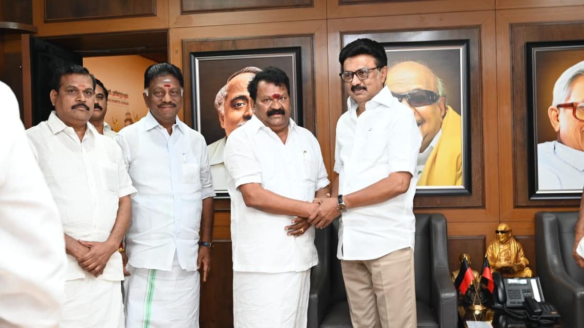 Former AIADMK MLA Om Sakthi Segar joined the DMK in the presence of Tamil Nadu Chief Minister and party president M. K. Stalin in Chennai. | Photo Credit: Special Arrangement Former AIADMK MLA Om Sakthi Segar joined the DMK in the presence of Tamil Nadu Chief Minister and party president M. K. Stalin in Chennai. After the split in the AIADMK, he remained a loyalist of former Tamil Nadu Chief Minister O. Panneerselvam and headed the Puducherry unit of the All India Anna Dravida Munnetra Workers’ Rights Retrieval Kazhagam. Following the switch over of Mr. Panneerselvam to the DMK camp, Mr. Segar also joined that party. A former ex-serviceman, Mr. Segar represented the Nellithope Assembly constituency in the Union Territory. Published – February 28, 2026 07:13 pm IST Share this: Click to share on WhatsApp (Opens in new window) WhatsApp Click to share on Facebook (Opens in new window) Facebook Click to share on Threads (Opens in new window) Threads Click to share on X (Opens in new window) X Click to share on Telegram (Opens in new window) Telegram Click to share on LinkedIn (Opens in new window) LinkedIn Click to share on Pinterest (Opens in new window) Pinterest Click to email a link to a friend (Opens in new window) Email More Click to print (Opens in new window) Print Click to share on Reddit (Opens in new window) Reddit Click to share on Tumblr (Opens in new window) Tumblr Click to share on Pocket (Opens in new window) Pocket Click to share on Mastodon (Opens in new window) Mastodon Click to share on Nextdoor (Opens in new window) Nextdoor Click to share on Bluesky (Opens in new window) Bluesky Like this:Like Loading... Post navigation Mallu Ravi rejects allegations linking infant’s death to clash at jatara Loan recovery agent arrested for harassing woman over non-existent loan
