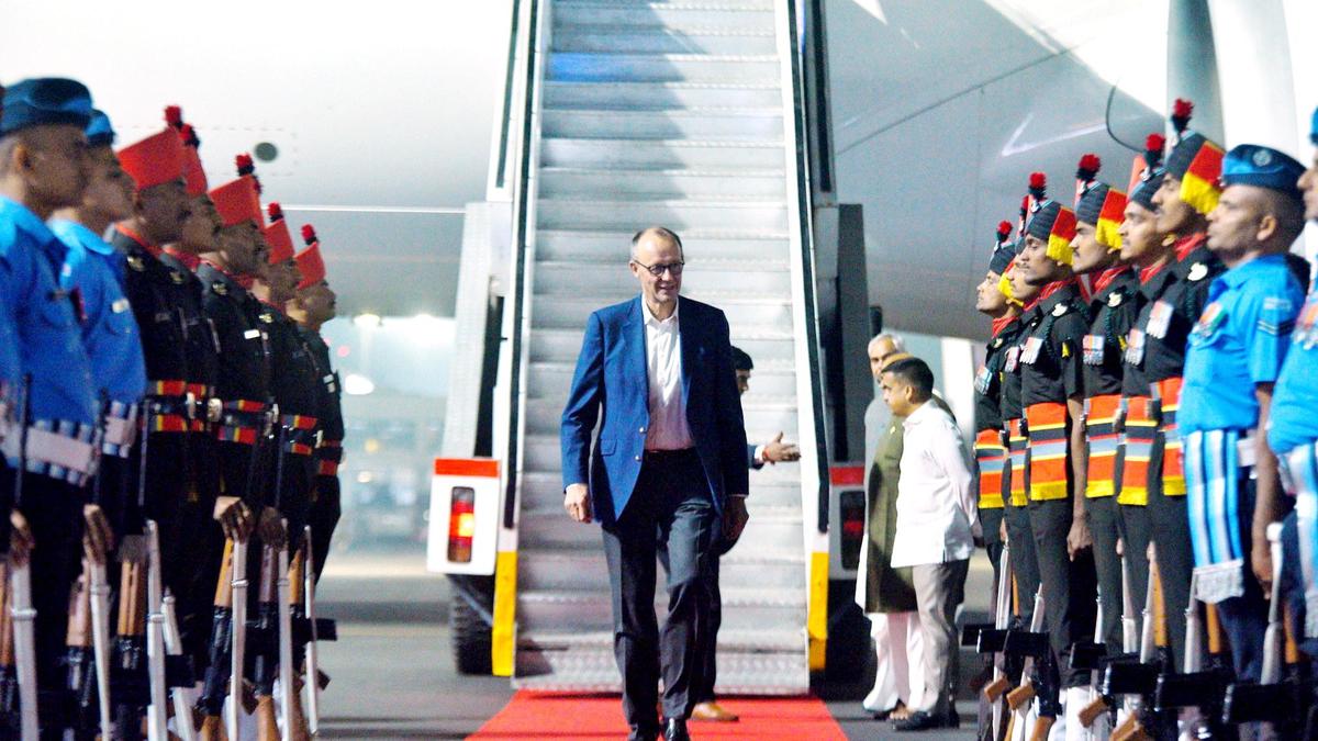 In this image posted on January 12, 2026, German Chancellor Friedrich Merz arrives at the airport ahead of bilateral talks with Prime Minister Narendra Modi, in Ahmedabad. Photo: @MEAIndia/X via PTI Photo Federal Chancellor of Germany, Friedrich Merz, arrived at the Sardar Vallabhbhai Patel International Airport early on Monday (January 12, 2026) morning, as he embarks on his first official visit to India. Also read | As German Chancellor Merz lands in Gujarat, activists demand that Modi ask for Ariha’s return Shoring up bilateral ties in trade, investment, critical technologies and defence are set to be the focus of wide-ranging talks between Prime Minister Narendra Modi and German Chancellor Friedrich Merz in Ahmedabad today. Besides holding talks with PM Modi, Mr. Merz is scheduled to visit the Sabarmati Ashram, participate in a kite festival and attend a skill development event in Ahmedabad, according to officials. The German leader will travel to Bengaluru after concluding his engagements in Ahmedabad. Read live updates here: Share this: Click to share on WhatsApp (Opens in new window) WhatsApp Click to share on Facebook (Opens in new window) Facebook Click to share on Threads (Opens in new window) Threads Click to share on X (Opens in new window) X Click to share on Telegram (Opens in new window) Telegram Click to share on LinkedIn (Opens in new window) LinkedIn Click to share on Pinterest (Opens in new window) Pinterest Click to email a link to a friend (Opens in new window) Email More Click to print (Opens in new window) Print Click to share on Reddit (Opens in new window) Reddit Click to share on Tumblr (Opens in new window) Tumblr Click to share on Pocket (Opens in new window) Pocket Click to share on Mastodon (Opens in new window) Mastodon Click to share on Nextdoor (Opens in new window) Nextdoor Click to share on Bluesky (Opens in new window) Bluesky Like this:Like Loading... Post navigation Truck drives through anti-Iran protest in Los Angeles CES 2026: AI pendants back in vogue at tech show after early setback