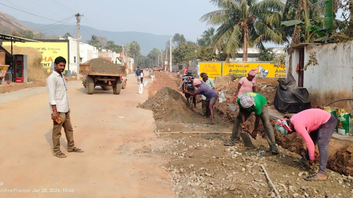 Road widening ongoing near Ramateertham temple in Nellimarla mandal, Vizianagaram district.