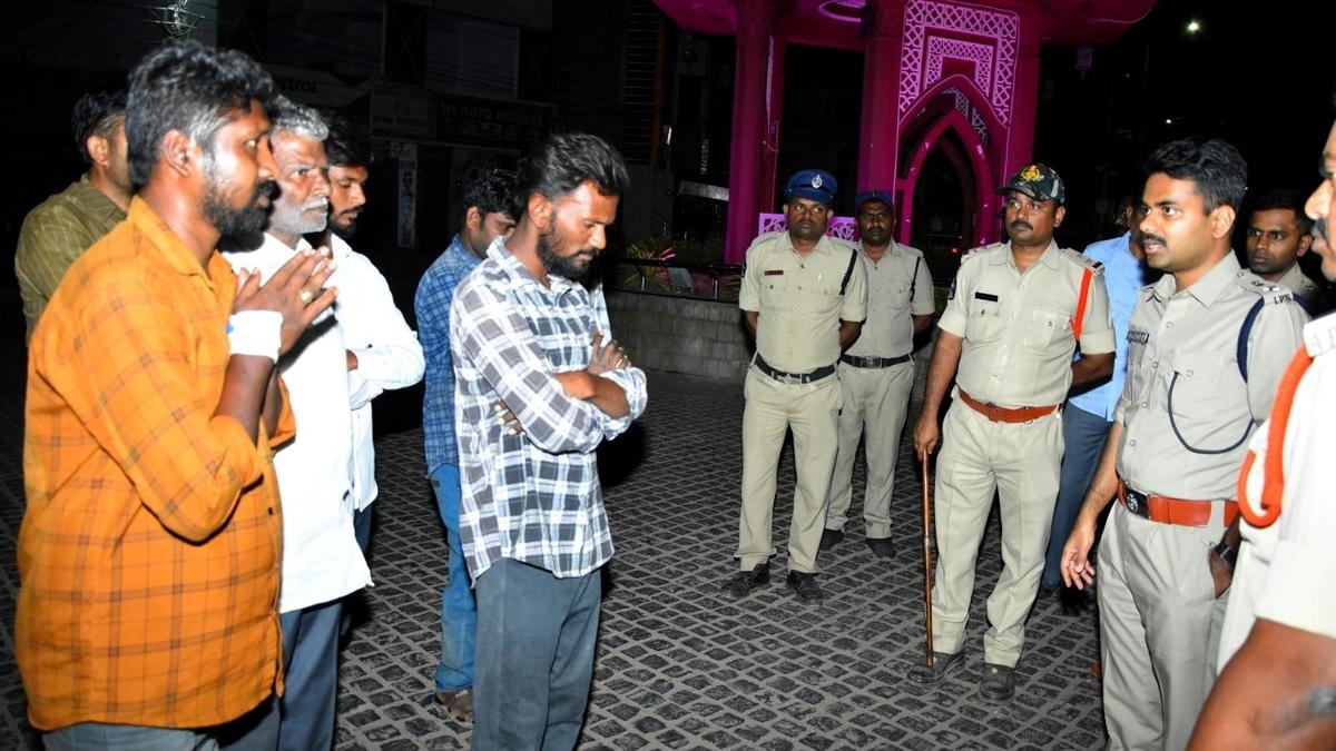 Superintendent of Police Nachiket Vishwanath Shelke and his team during a night patrol in Kadapa on Tuesday.