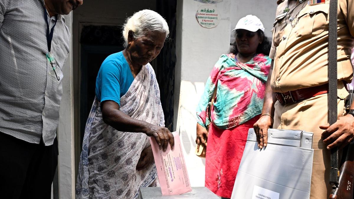 Postal ballot voting for senior citizens aged above 85 years and persons with disabilities in Coimbatore city began on Sunday for the Tamil Nadu Assembly elections. | Photo Credit: PERIASAMY M. Home voting for senior citizens and persons with disabilities (PwDs) began in Coimbatore district on Sunday (April 12, 2026) as part of the Tamil Nadu Assembly election 2026. District Election Officer and Collector Pavankumar G. Giriyappanavar flagged off polling teams at the Collectorate to commence home voting across 10 Assembly constituencies. Published – April 12, 2026 10:14 pm IST Share this: Click to share on WhatsApp (Opens in new window) WhatsApp Click to share on Facebook (Opens in new window) Facebook Click to share on Threads (Opens in new window) Threads Click to share on X (Opens in new window) X Click to share on Telegram (Opens in new window) Telegram Click to share on LinkedIn (Opens in new window) LinkedIn Click to share on Pinterest (Opens in new window) Pinterest Click to email a link to a friend (Opens in new window) Email More Click to print (Opens in new window) Print Click to share on Reddit (Opens in new window) Reddit Click to share on Tumblr (Opens in new window) Tumblr Click to share on Pocket (Opens in new window) Pocket Click to share on Mastodon (Opens in new window) Mastodon Click to share on Nextdoor (Opens in new window) Nextdoor Click to share on Bluesky (Opens in new window) Bluesky Like this:Like Loading... Post navigation Burglars decamp with gold, cash from locked house in Shamshabad Oddanchatram Assembly constituency needs Agro-based industries