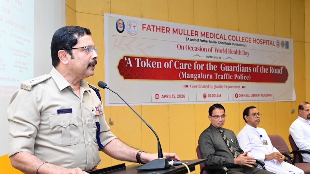 Ravi Shankar, Deputy Commissioner of Police (Crime & Traffic),Mangaluru speaking at a programme organised by the Father Muller Medical College Hospital, in Mangaluru on Friday. | Photo Credit: SPECIAL ARRANGEMENT About 250 police personnel participated in the ‘a token of care for the guardians of the road’ programme organised by the Father Muller Medical College Hospital here on Wednesday. The programme was organised for traffic police of Mangaluru on the occasion of World Health Day. Published – April 17, 2026 08:08 pm IST Share this: Click to share on WhatsApp (Opens in new window) WhatsApp Click to share on Facebook (Opens in new window) Facebook Click to share on Threads (Opens in new window) Threads Click to share on X (Opens in new window) X Click to share on Telegram (Opens in new window) Telegram Click to share on LinkedIn (Opens in new window) LinkedIn Click to share on Pinterest (Opens in new window) Pinterest Click to email a link to a friend (Opens in new window) Email More Click to print (Opens in new window) Print Click to share on Reddit (Opens in new window) Reddit Click to share on Tumblr (Opens in new window) Tumblr Click to share on Pocket (Opens in new window) Pocket Click to share on Mastodon (Opens in new window) Mastodon Click to share on Nextdoor (Opens in new window) Nextdoor Click to share on Bluesky (Opens in new window) Bluesky Like this:Like Loading... Post navigation Postal voting gets under way in Tiruchi Not grades, marks will be awarded for SSLC third language: State govt tells Karnataka High Court