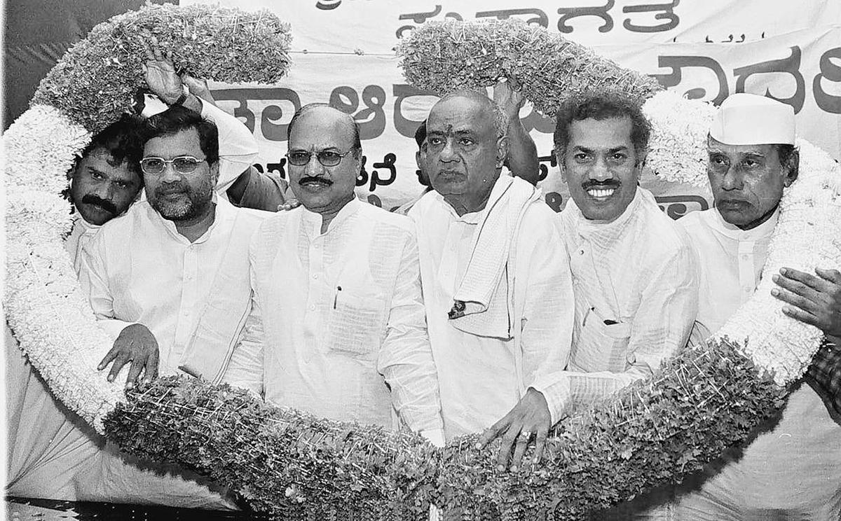 Political journeys are seldom linear, and the career of Siddaramaiah — who surpassed the record of D. Devaraj Urs to become the longest-serving Chief Minister of Karnataka — has been marked by dramatic twists and turns over four decades of his political career. Here are some images from the AHINDA strongman’s journey of highs and lows in Karnataka politics. Photo: PRABHAKAR TL Siddaramaiah B, Minister of State, (Photographed during the Karnataka Assembly Elections, March 1985). Photo: SRIRAM MA A 1989 picture of Siddaramaiah (right) with his friend found at his relative’s home in Siddaramanahundi village in Mysore district on May 10, 2013. Taking the oath as Minister for Animal Husbandry and Veterinary Services in the Ramakrishna Hegde government, along with (far left) B.R. Yavagal, P.G.R. Sindhia and M.P. Prakash. Photo: HANDOUT E MAIL Siddaramaiah seen with Chief Minister Ramakrishna Hegde. A 1995 image of a visibly tired Chief Minister H. D. Deve Gowda being briefed by the Finance Minister Siddaramaiah at the Zilla Panchayat members meeting in Bangalore at a symbolic “panchayat katte”. Photo: HANDOUT E MAIL Siddaramaiah taking oath as Deputy Chief minister in the presence of Chief Minister J H Patel and Governor Kurshid Alam Khan in 1996. Siddaramaiah, presenting the State Budget for 1997-98 as Deputy Chief Minister and Finance Minister of Karnataka, in Bengaluru. Photo: HINDU ARCHIVES Siddaramaiah as JD(S) state president seen with H.D. Deve Gowda on February 5, 2002. Photo: SREENIVASA MURTHY V Former Prime Minister and JD(S) national president H.D. Deve Gowda with Siddaramaiah, who was elected as legislative party leader, after the legislative party meeting in Bangalore, on May 16, 2004. Photo: K. MURALI KUMAR Siddaramaiah, then State president of Janata Dal (S), waving to the crowd, in front of the H.D. Deve Gowda’s residence at Padmanabanagar, in Bangalore on May 14, 2004. Photo: K_MURALIKUMAR Siddaramaiah, then Deputy CM, browsing a newspaper carrying photographs of his swearing-in ceremonyin Bangalore on May 29, 2004. Photo: SOMASHEKARA GRN CM Dharam Singh and Deputy CM Siddaramaiah after the swearing in ceremony in Bangalore on May 28, 2004. The Deputy Chief Minister and JD(S) State President Siddaramaiah accorded a rousing welcome by his supporters on his first visit to Mysore after assuming charge as Deputy CM in 2004. Photo: BHAGYA PRAKASH S. Siddaramaiah getting ready to present the State Budget for the year 2004-05 in Bangalore on July 19, 2004. Deputy Chief Minister Siddaramaiah collects donations for tsunami-hit victims as part of his padayatra in Mysore in January 2005. Photo: HANDOUT_E_MAIL Opposition leader Siddaramaiah, KPCC President R.V. Deshpande and others take a break during the padayatra from Bangalore to Bellary Padayatra in July 2010. Photo: SREENIVASA MURTHY V Siddaramaiah, announced Chief Minister elect, waves after the Congress Legislative Party Meeting (CLP) at KPCC on April 10, 2013. Photo: – A supporter flashes a tattoo of Congress leader Siddaramaiah, near his residence in Bengaluru on May 17, 2023. Photo: SOMASHEKARA GRN KPCC Chief Siddaramaiah (left) is sworn in as Chief Minister by Karnataka Governor H.R. Bhardwaj during the swearing-in ceremony at Kanteerava Stadium in Bangalore on May 13, 2013. Photo: SREENIVASA MURTHY V President of Congress party Rahul Gandhi and Chief Minister Siddaramaiah wave at villagers and youth Congress members during a Padayatra at Ranebennur in Haveri District on October 10, 2015. Photo: MURALI KUMAR K Newly-elected Karnataka Chief Minister Siddaramaiah, deputy CM DK Shivakumar, AICC President Mallikarjun Kharge, Congress leaders Rahul Gandhi, Priyanka Gandhi, Tamil Nadu CM M K Stalin, Bihar CM Nitish Kumar, Jharkhand CM Hemant Soren, Himachal Pradesh CM Sukhvinder Sukhu and others during the oath ceremony of Karnataka government, at Sree Kanteerava Stadium, in Bengaluru on May 20, 2023. Photo: HANDOUT E MAIL Chief Minister Siddaramaiah issuing tickets to women passengers during the launch of ‘Shakti’ free bus travel scheme for women at Kempegowda Bus stand in Bengaluru. Also seen Deputy Chief Minister D K Shivakumar , Minister of Transport for Ramalinga Reddy. Published – January 06, 2026 03:25 pm IST Share this: Click to share on WhatsApp (Opens in new window) WhatsApp Click to share on Facebook (Opens in new window) Facebook Click to share on Threads (Opens in new window) Threads Click to share on X (Opens in new window) X Click to share on Telegram (Opens in new window) Telegram Click to share on LinkedIn (Opens in new window) LinkedIn Click to share on Pinterest (Opens in new window) Pinterest Click to email a link to a friend (Opens in new window) Email More Click to print (Opens in new window) Print Click to share on Reddit (Opens in new window) Reddit Click to share on Tumblr (Opens in new window) Tumblr Click to share on Pocket (Opens in new window) Pocket Click to share on Mastodon (Opens in new window) Mastodon Click to share on Nextdoor (Opens in new window) Nextdoor Click to share on Bluesky (Opens in new window) Bluesky Like this:Like Loading... Post navigation Inauguration of ‘fake’ phansi ghar: Take ‘proper action’ against Arvind Kejriwal and others, says Committee of Privileges ECI illegally using mobile apps developed by BJP’s IT cell to conduct SIR, alleges Mamata